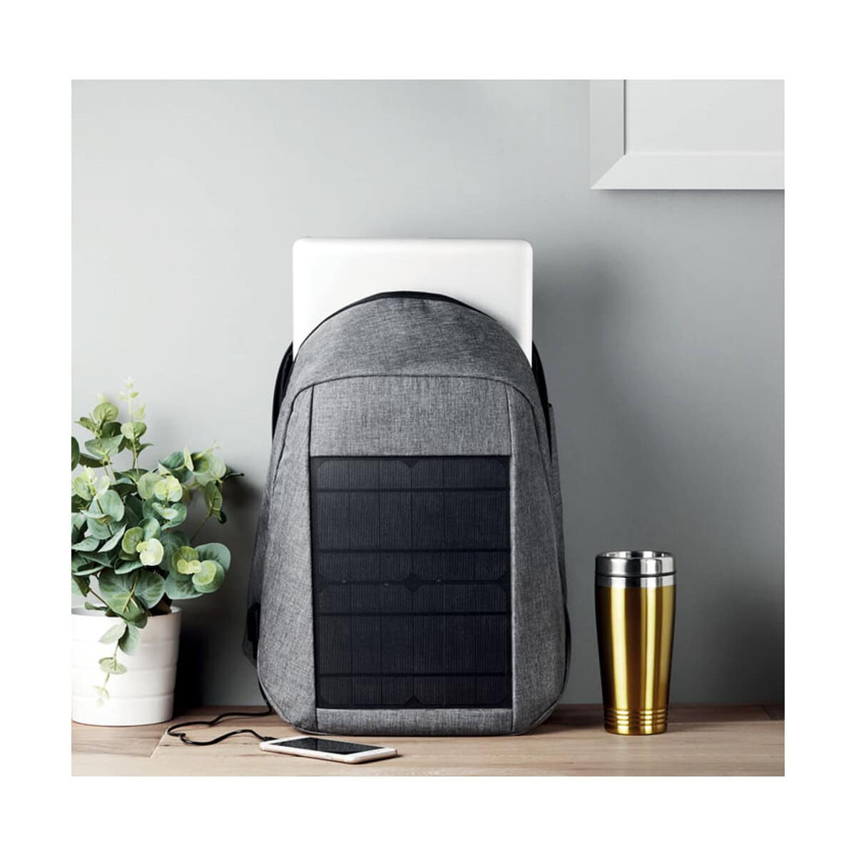 Duża powierzchnia frontowa pozwala nanieść logo i trwały nadruk, dzięki czemu powstaje unikalny nośnik reklamy. Obdarowani użytkownicy wystawiają Twój znak firmowy na widok publiczny w parkach, na uczelni i w biurze, co czyni produkt silnym narzędziem reklamowym. Ergonomiczna konstrukcja 40 × 45 cm, niska waga oraz ładowanie energią słoneczną tworzą wymarzony plecak reklamowy dla Twojej firmy 🚀.