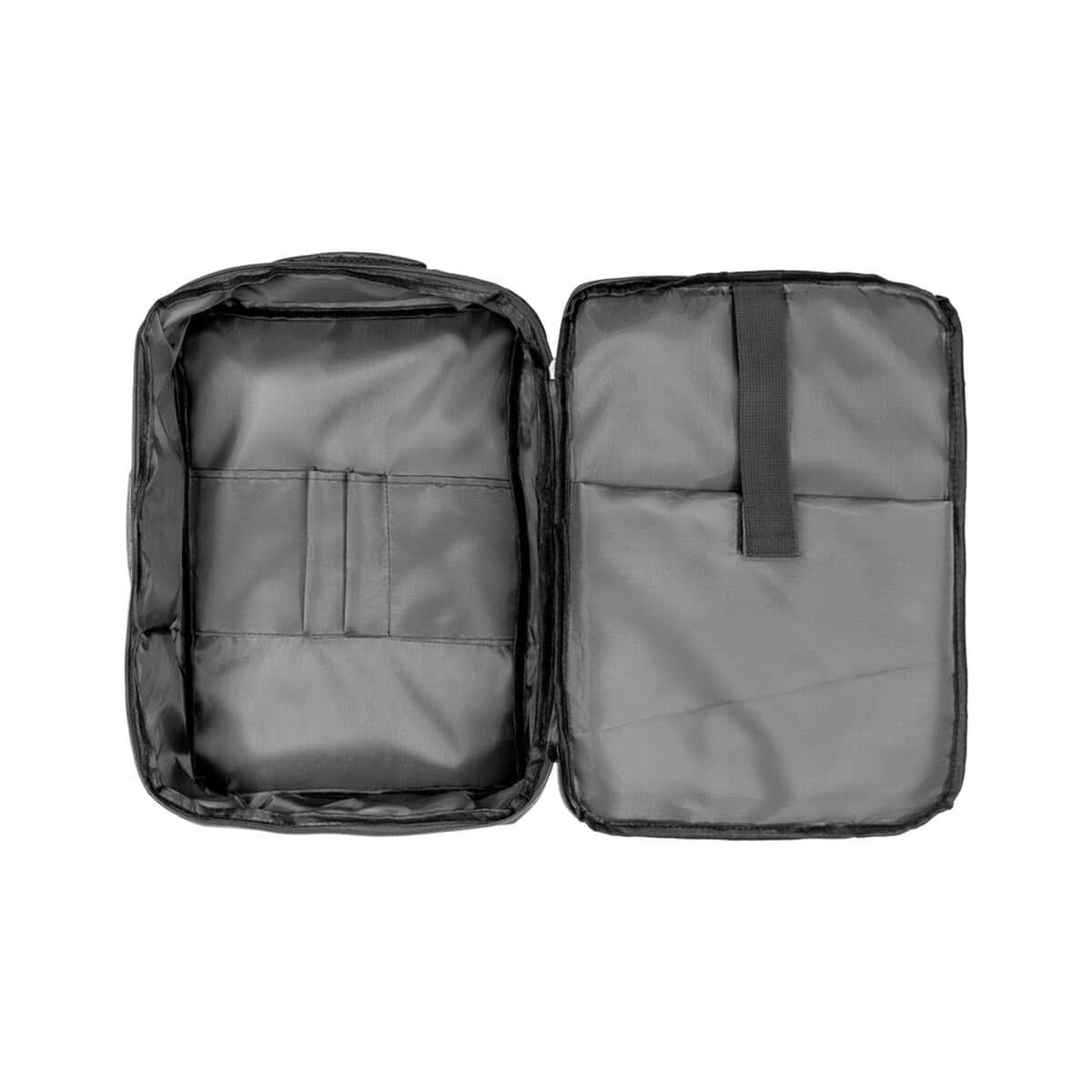 Plecak, torba na laptopa 15,6″ RPET | Tahir to znakomity, wielofunkcyjny gadżet, który z łatwością łączy biznesowy szyk z ekologiczną troską 😊. Produkt wykonano w 100% z przetworzonych butelek, więc już sam materiał – poliester 300D RPET oraz 210D – podkreśla jego współczesny charakter i odpowiedzialność. Dzięki przemyślanemu projektowi plecak błyskawicznie zmienia się w elegancką torbę – wystarczy chwycić za boczny uchwyt, by Twój 15,6-calowy laptop zyskał perfekcyjną ochronę w każdej podróży. Wygodę dopełnia zapinana główna przegroda z miękką kieszenią na laptopa lub dokumenty, a także 2 małe kieszenie i 2 szlufki na długopisy, które sprawią, że wszystkie drobiazgi zawsze będą pod ręką.