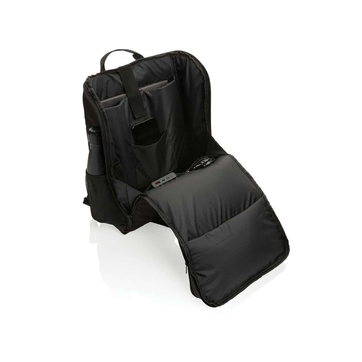 Plecak z panelem słonecznym 5W Pedro AWARE™ RPET sprawdzi się jako ekskluzywny gadżet dla sektora IT, energii odnawialnej, uczelni technicznych czy firm logistycznych, podkreślając ich innowacyjność podczas targów i konferencji. Duża, gładka powierzchnia przednia zachęca do umieszczenia logo lub efektownego nadruku UV, czyniąc go mobilnym billboardem, a kategoria Plecaki z logo oraz Torby na laptopa z logo zyskuje prawdziwy hit.