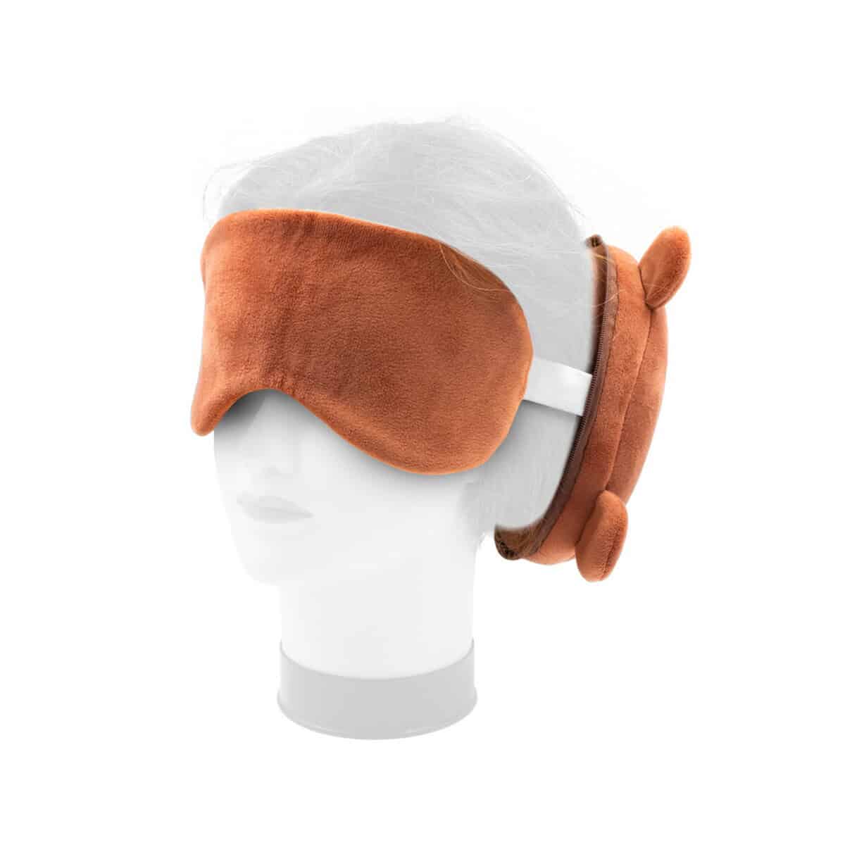 Pluszowa poduszka, zagłówek podróżny, maska na oczy, miś | Ren