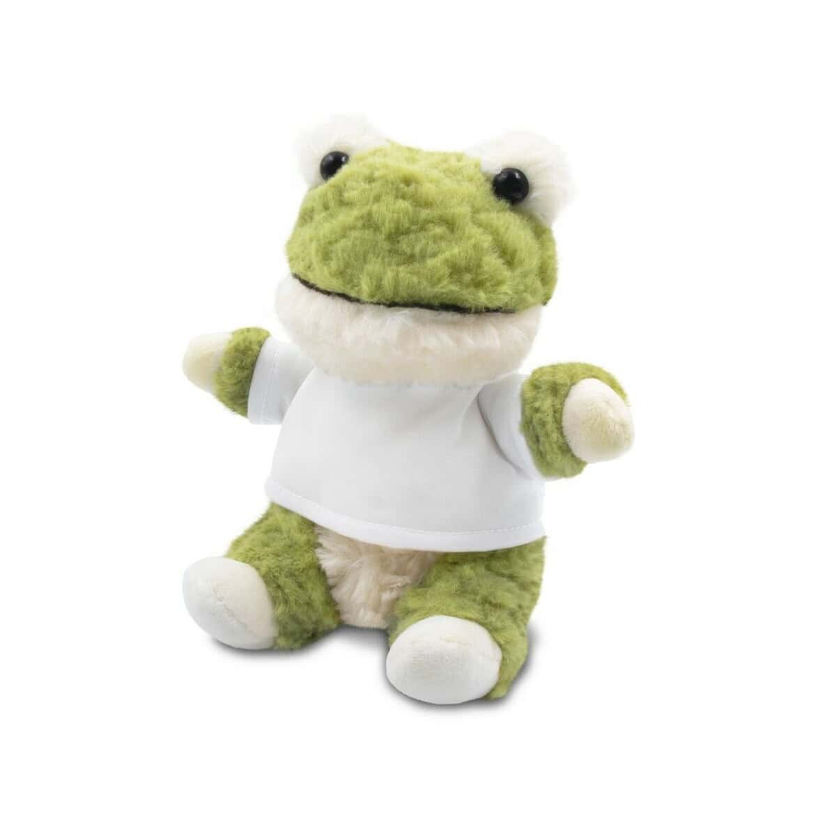 Pluszowa żaba | Ponddie to znakomity, mięciutki kompan, który już od pierwszego spojrzenia wywołuje uśmiech 🙂. Jej przyjazne, zielone spojrzenie sprawia, że będzie wyśmienitym upominkiem zarówno dla dzieci, jak i dorosłych lubiących sympatyczne maskotki. Dołączona biało-kremowa koszulka czeka na Twój wymarzony nadruk, dzięki czemu maskotka błyskawicznie zmienia się w niepowtarzalny gadżet firmowy.