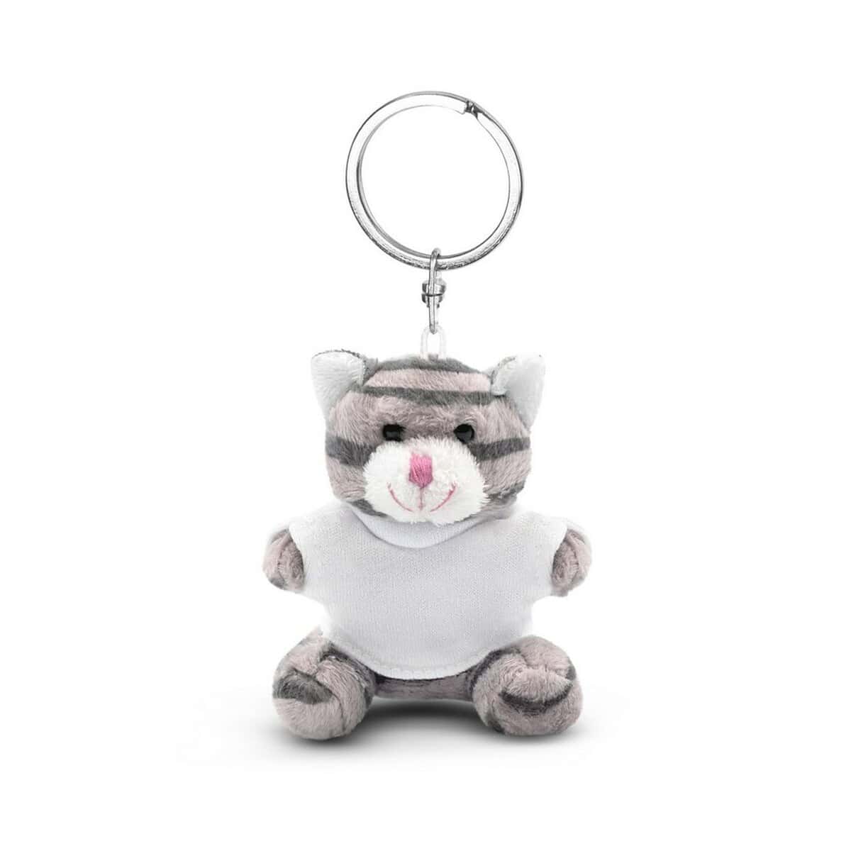 Pluszowy kot, brelok | Ollie to znakomity sposób, by wyróżnić markę i wywołać uśmiech u klientów. Ten uroczy szary kociak o Wymiary: 8 cm i wadze zaledwie 18 g mieści się w każdej kieszeni czy plecaku, a dzięki praktycznemu kółku zawiesisz go przy kluczach, torbie lub plecaku. Miękki materiał: plusz, poliester sprawia, że aż chce się go przytulać 😻. Biała koszulka, pakowana oddzielnie, czeka na Twój unikalny nadruk – możesz umieścić na niej dowolne logo, hasło czy grafikę, tworząc mały, lecz niezwykle skuteczny nośnik reklamy.
