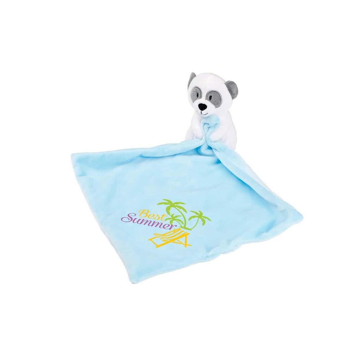 Pluszowy mini kocyk panda | Lorrie to wprost stworzony, mięciutki kompan, który skradnie serca zarówno najmłodszych, jak i dorosłych miłośników uroczego wzornictwa 🐼. Ten kompaktowy kocyk o rozmiarze 24 x 24 cm skrywa w sobie pluszową pandę o wysokości 11 cm, tworząc duet, który zachwyci każdego obdarowanego. Dzięki możliwości umieszczenia widocznego logo, ten produkt staje się niezawodnym nośnikiem wizerunku, wyróżniając markę podczas targów, eventów rodzinnych czy kampanii employer branding.