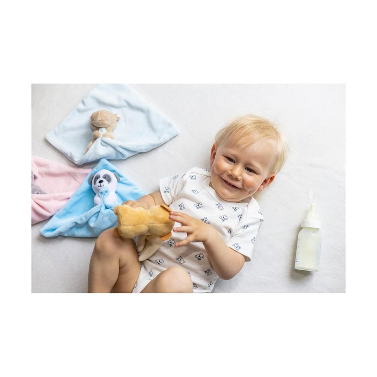 Waży zaledwie 50 g, więc mieści się w torbie, plecaku, a nawet w kieszeni wózka spacerowego. Wykonany z miękkiego, przyjemnego w dotyku materiału plusz w klasycznych barwach czerni i bieli wygląda elegancko i przyciąga wzrok. Ten gadżet jest także niezwykle praktyczny: otul kocykiem niemowlę w podróży, użyj go jako delikatnej poduszki w biurze lub potraktuj pandę jako maskotkę dodającą ciepła domowej przestrzeni.