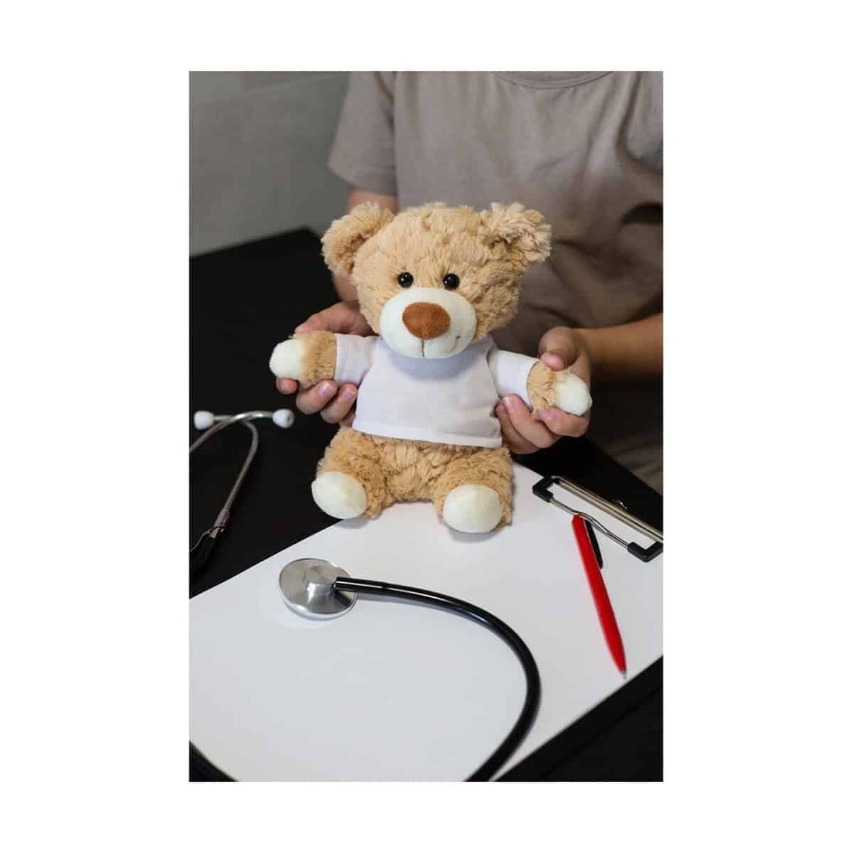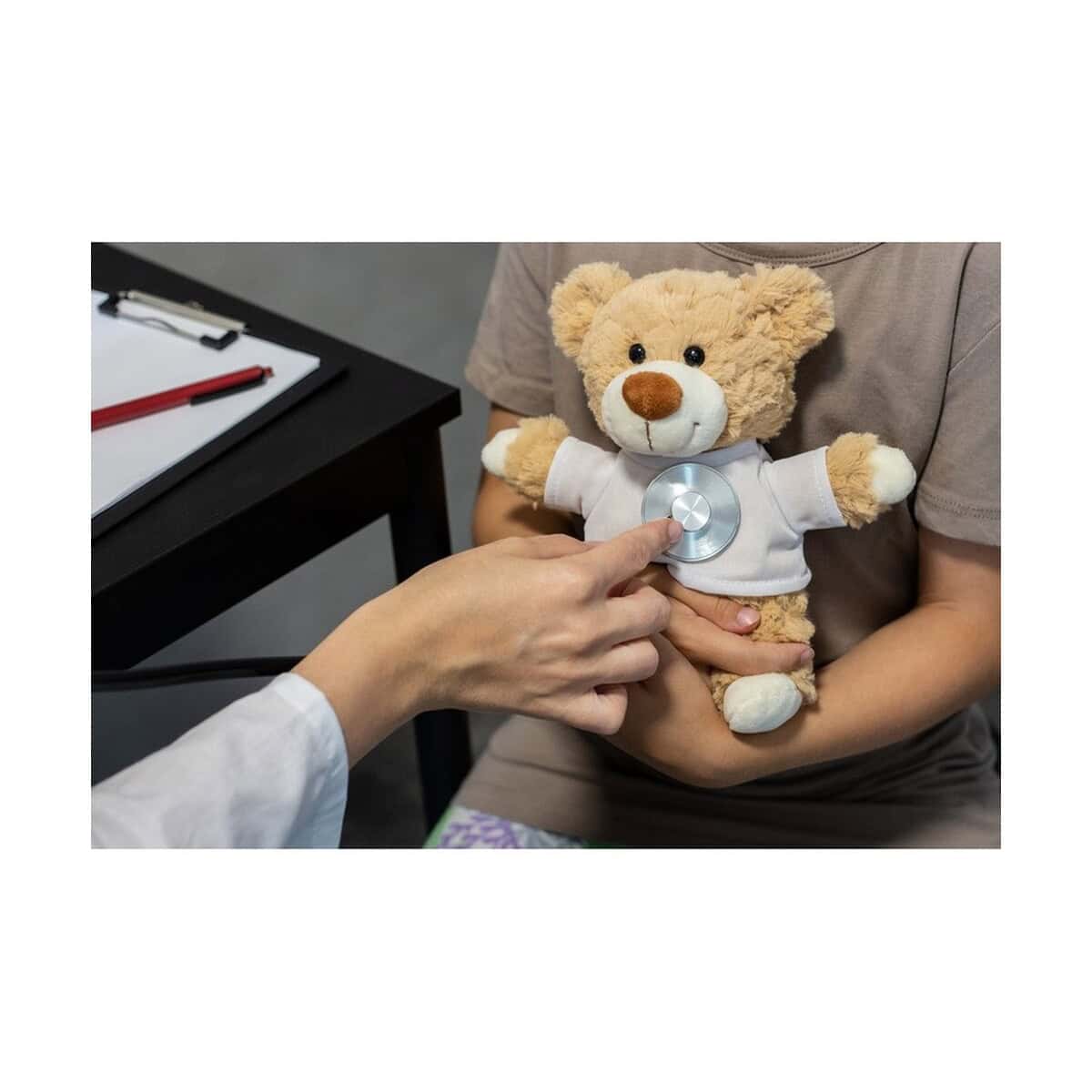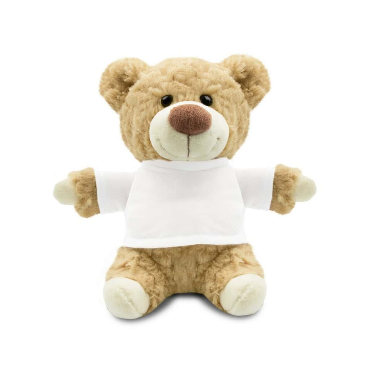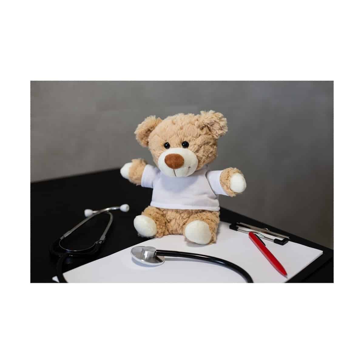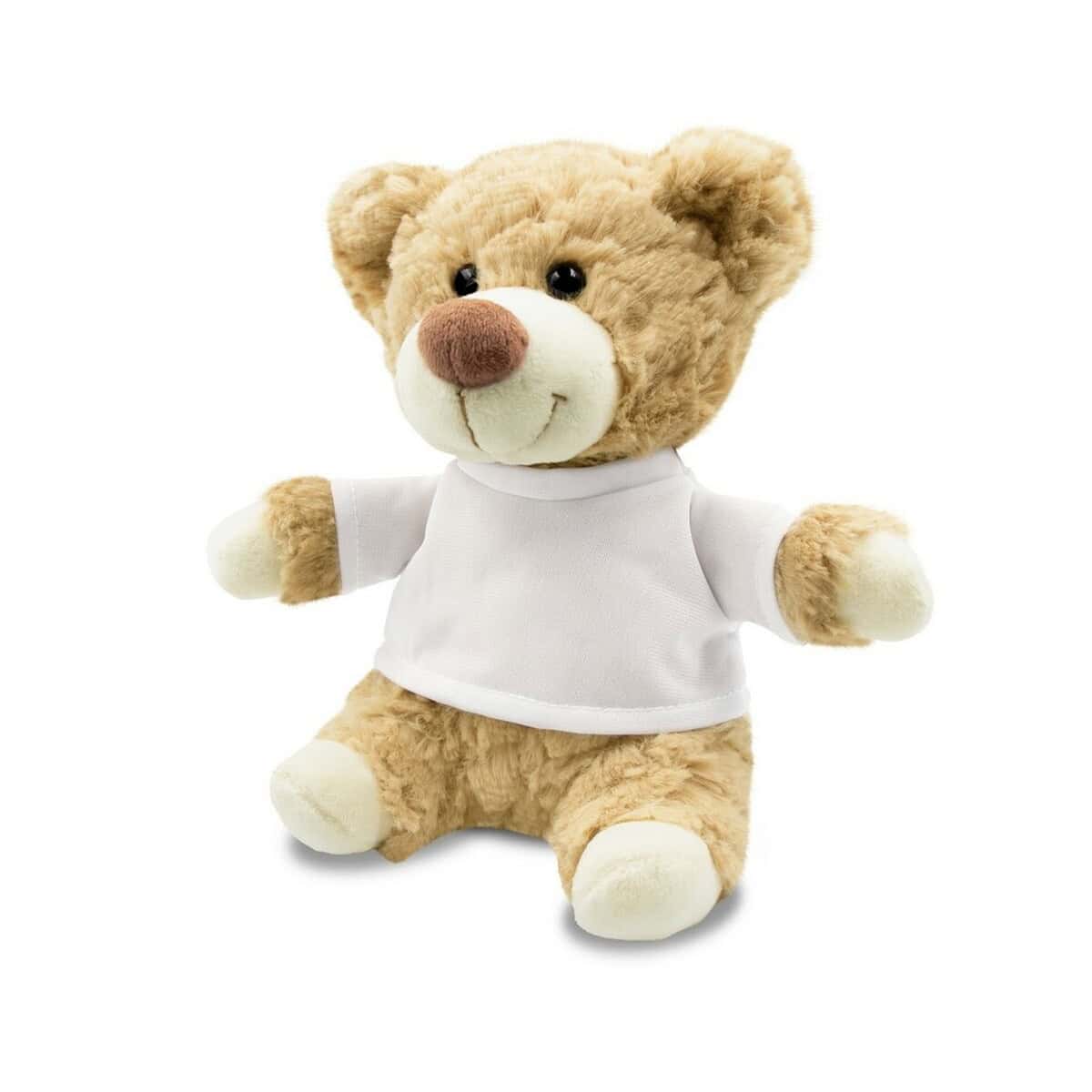 Precyzyjnie dobrane kolory: beżowy miś i śnieżnobiała koszulka, tworzą neutralne tło dla Twojej identyfikacji wizualnej. Dzięki kompaktowym rozmiarom pluszak bez trudu zmieści się w pudełkach subskrypcyjnych czy pakietach targowych. Klienci, partnerzy i pracownicy z przyjemnością zabiorą go do domu lub biura, gdzie każdego dnia przypomni o Twojej marce. To prezent znakomity dla Twojej firmy, która chce podkreślić troskę, bliskość i pozytywne emocje.