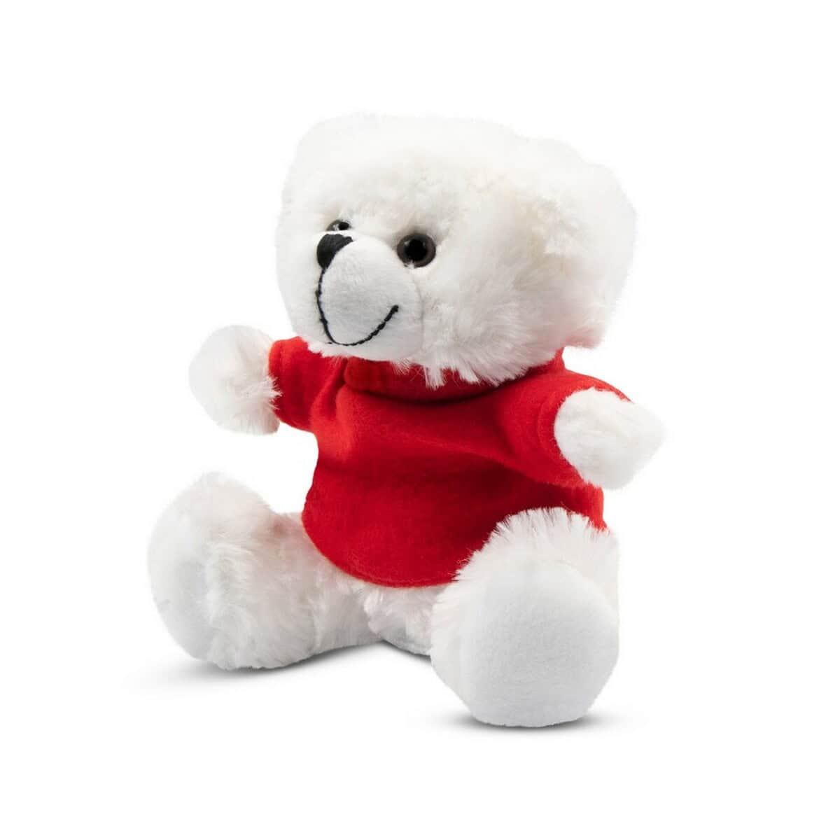 Pluszowy miś | Garrett to znakomity sposób, aby ocieplić wizerunek marki i wywołać uśmiech na twarzach klientów 😊. Ten biały bohater o wysokości wymiary: 15 cm i wadze zaledwie waga: 65 g został uszyty z mięciutkiego materiał: plusz, poliester, dzięki czemu jest przyjemny w dotyku i bezpieczny nawet dla najmłodszych. W zestawie otrzymujesz czerwoną koszulkę pakowaną oddzielnie, przygotowaną pod wyraźny nadruk; może to być Twoje firmowe logo, hasło promocyjne albo dowolna grafika. Dzięki kontrastowi kolory: biały, czerwony przekaz staje się jeszcze bardziej widoczny i zapada w pamięć.