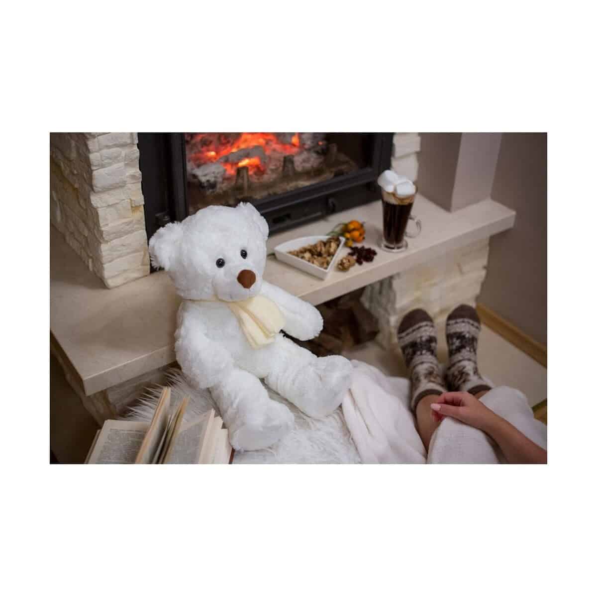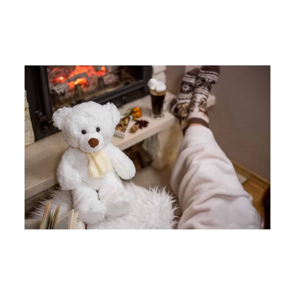 – Wymiary: 33 cm, dzięki czemu miś jest na tyle duży, by przyciągał uwagę, i jednocześnie na tyle poręczny, by towarzyszyć w podróży.