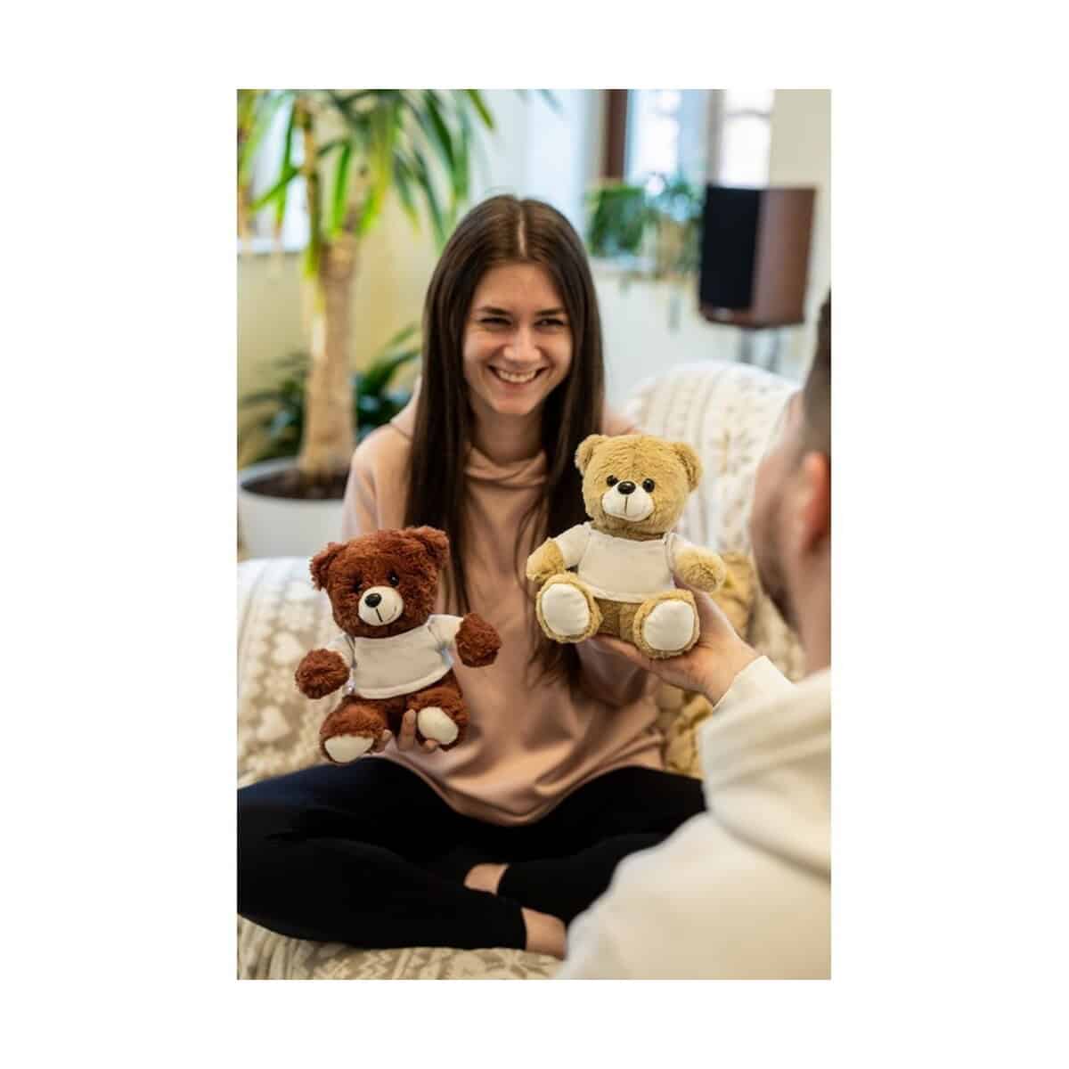 Pluszowy miś | Roger Brown to prawdziwie uroczy ambasador marki, który już od pierwszego spojrzenia budzi sympatię i ciepłe emocje 😊. Ten brązowy maluch o wysokości 17 cm został uszyty z miękkiego pluszu i trwałego poliesteru, a dołączona biała koszulka czeka na Twój spersonalizowany nadruk. Co ważne, koszulka jest pakowana oddzielnie, dzięki czemu możesz bez przeszkód nanieść wymarzone logo w najwyższej jakości.