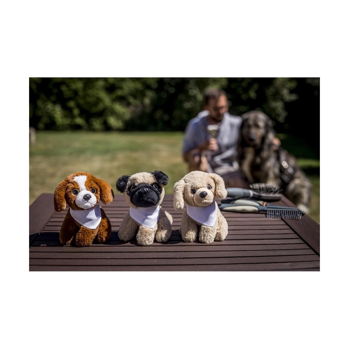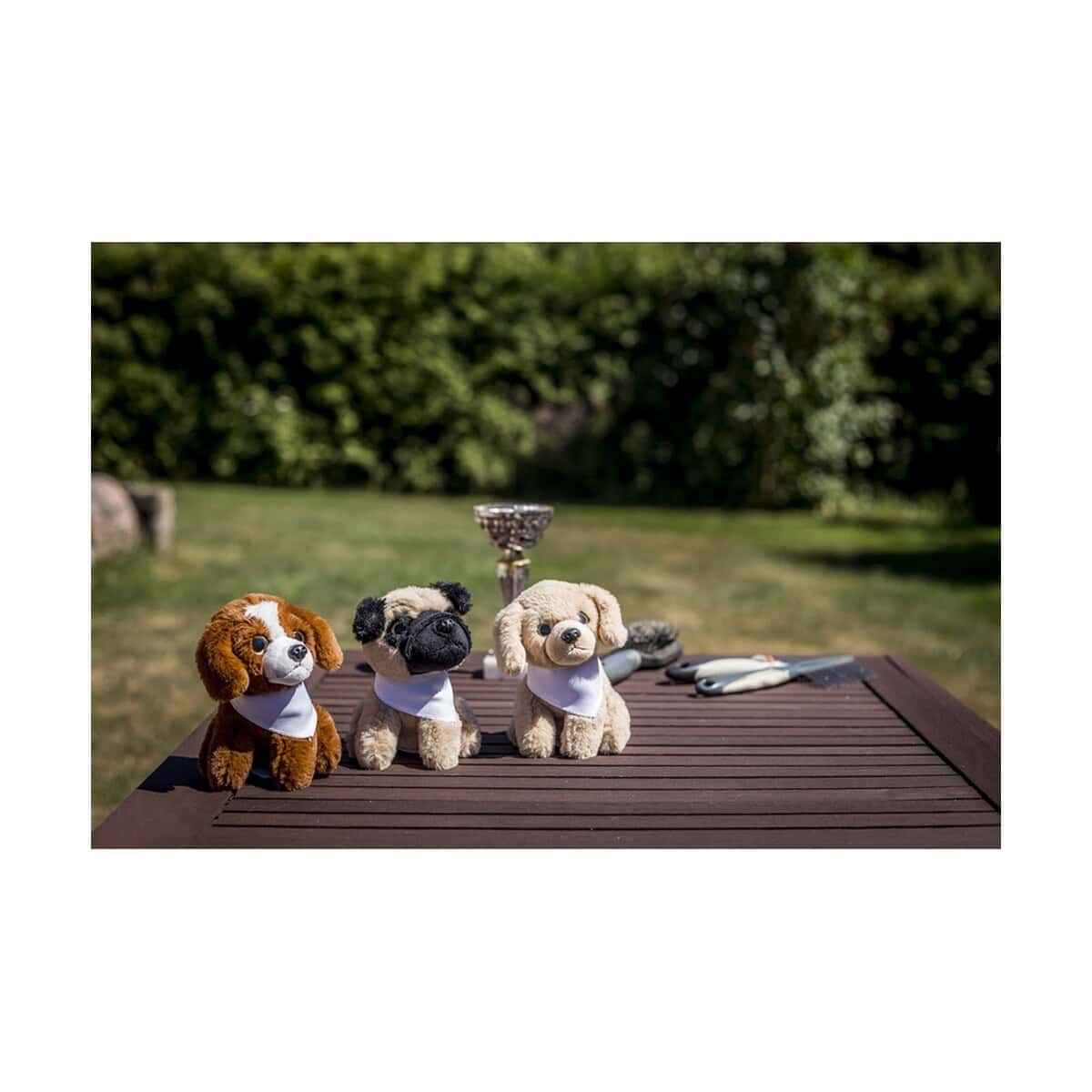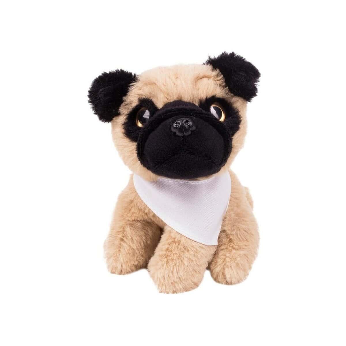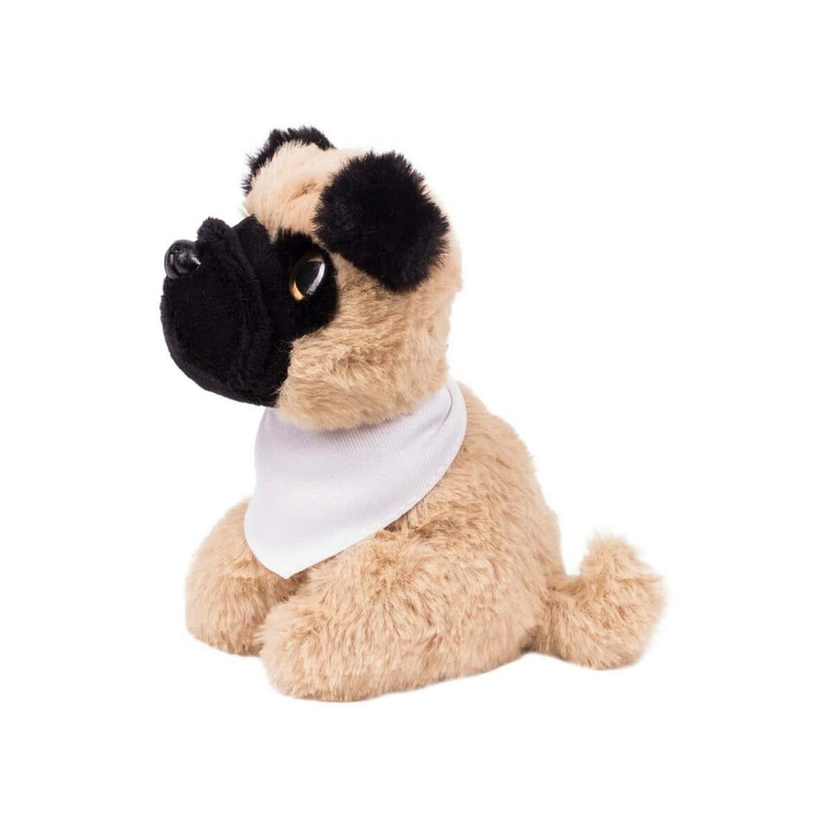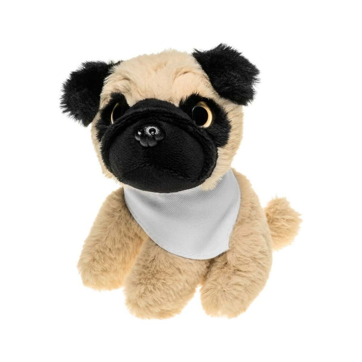 Pluszowy pies mops | Aksel to rozkoszny, jasnobrązowy kompan o wysokości 14 cm, ważący zaledwie 65 g. Uszyty z mięciutkiego pluszu oraz solidnego poliesteru, zachwyci zarówno dzieci, jak i dorosłych. Ten mopsik nosi białą chustkę przygotowaną pod nadruk, co pozwala umieścić dowolne logo i zamienić maskotkę w wyjątkowy gadżet promocyjny 😊. Chustka jest dostarczana oddzielnie, dzięki czemu nadruk można nanieść w dogodnym momencie.
