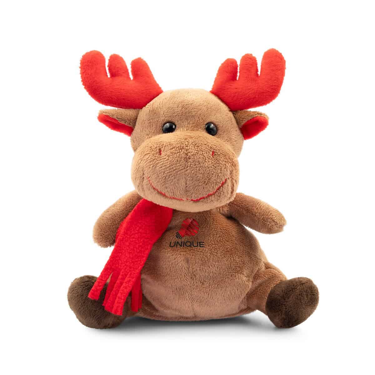 Miejsce na brzuchu renifera zostało zaprojektowane specjalnie z myślą o nadruk — tu możesz umieścić swoje logo, świąteczną grafikę lub hasło kampanii. Starannie wykonany z miękkiego pluszu, prezentuje się elegancko i przyjemnie w dotyku, a głęboki brązowy kolor świetnie kontrastuje z wyrazistym zdobieniem. To sprawia, że Pluszowy renifer | Archie staje się niepowtarzalnym, a zarazem praktycznym gadżet promocyjnym 🎁.