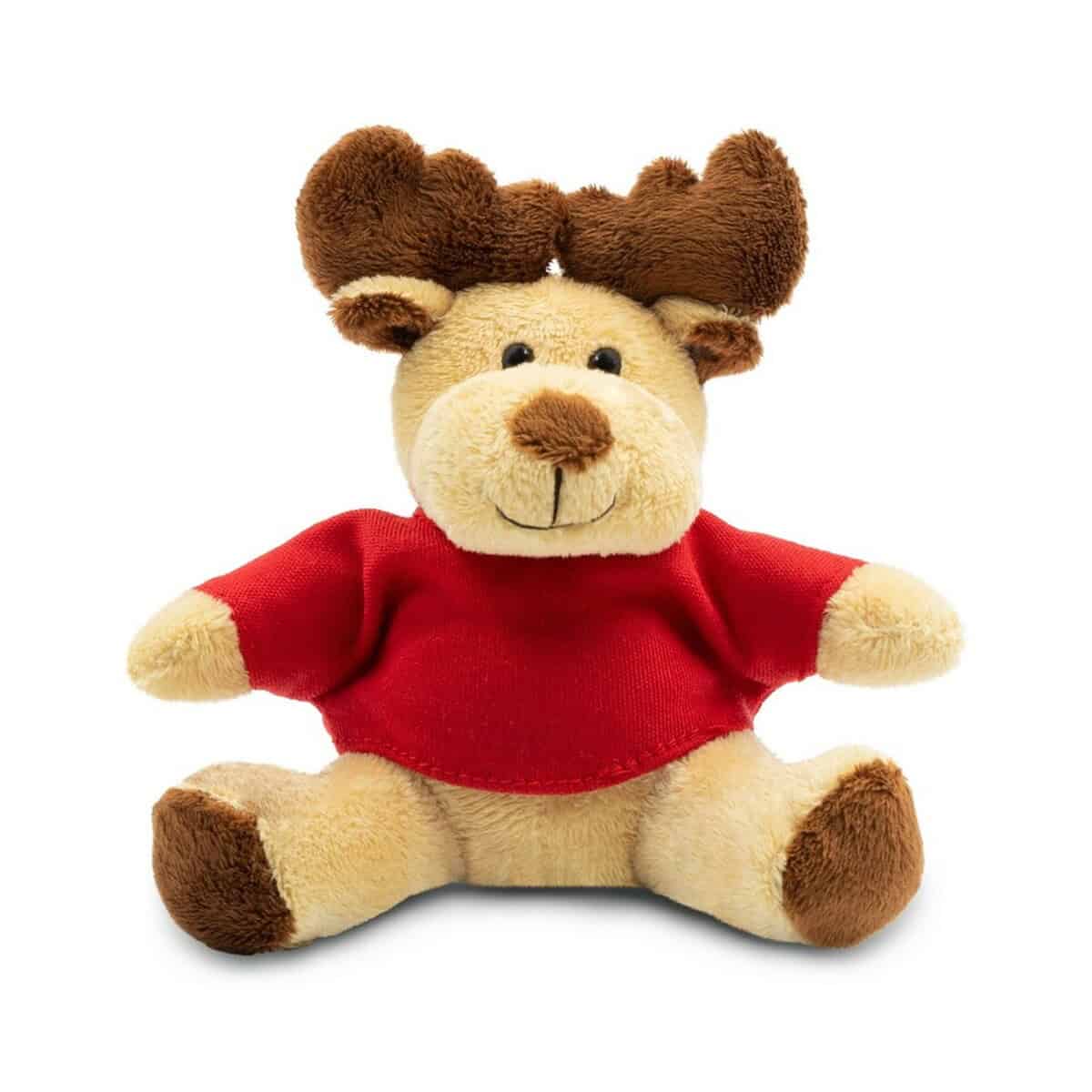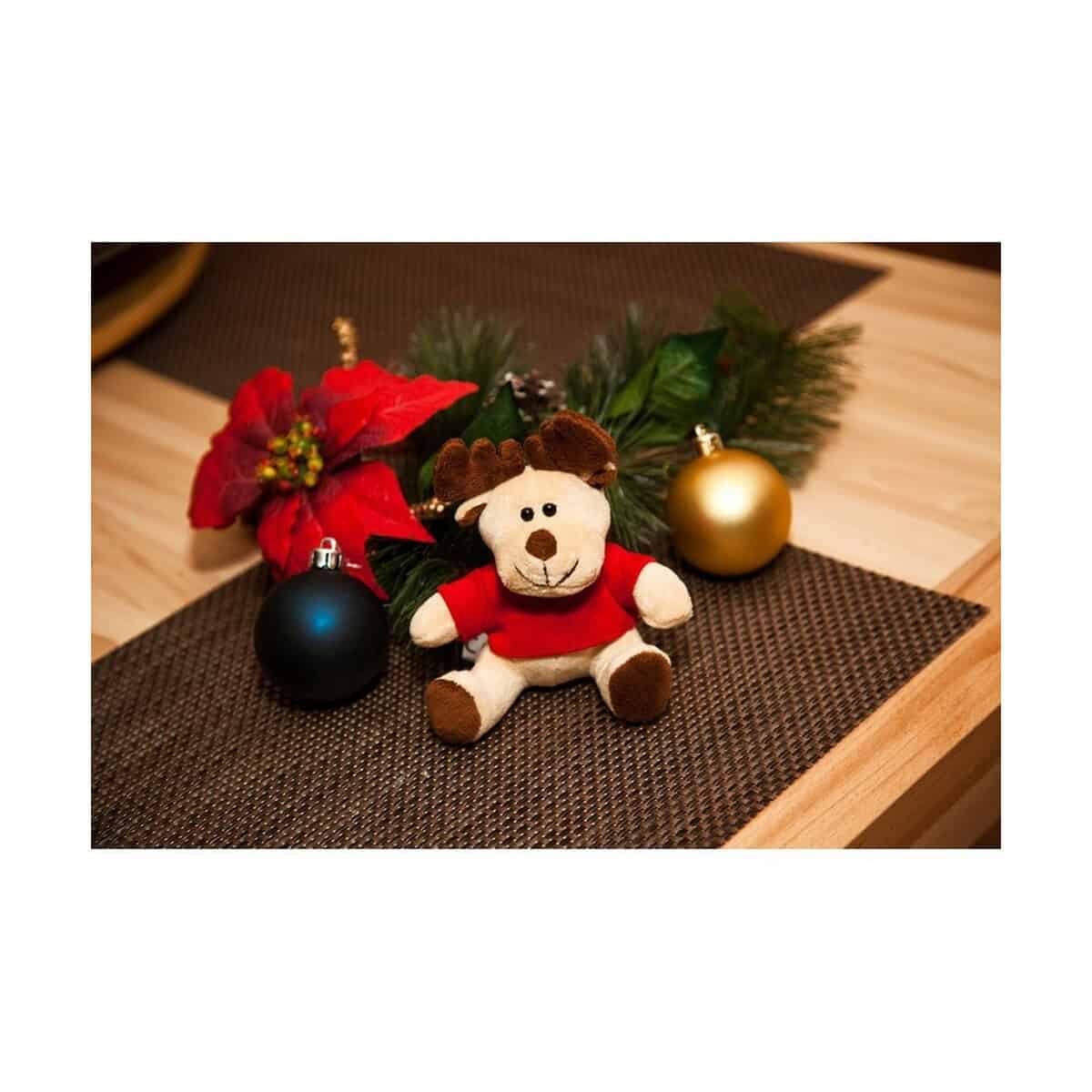 Pluszowy renifer | Comet Red to świąteczny bohater o wielkim uroku i niewielkich gabarytach – ma tylko 10,5 cm wysokości i waży zaledwie 32 g, dzięki czemu z łatwością zmieści się w paczce prezentowej, kopercie mailingowej czy na biurku Twoich klientów 🙂. Uszyty z miękkiego pluszu w kolorze jasnobrązowym oraz wyposażony w bawełnianą, czerwoną koszulkę przygotowaną pod nadruk (koszulka pakowana oddzielnie), stanowi wyjątkowo przyjazny gadżet świąteczny, który od razu przywołuje ciepłe skojarzenia z Bożym Narodzeniem.