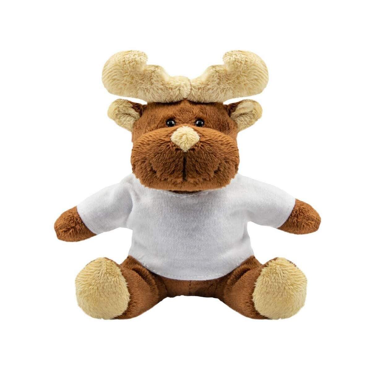 Pluszowy renifer | Comet White to rozbrajająco uroczy, świąteczny gadżet, który wprowadzi odrobinę magii do każdej kampanii marketingowej 😊. Miniaturowy renifer o Wymiarach: 10,5 cm i wadze zaledwie Waga: 32 g powstał z przyjemnego w dotyku Materiał: plusz, bawełna, a jego klasyczny Kolor: brązowy świetnie kontrastuje z dołączoną białą koszulką, przeznaczoną pod wyrazisty nadruk. Dzięki temu Twoje logo będzie doskonale wyeksponowane, podkreślając charakter marki nie tylko w okresie Bożego Narodzenia.
