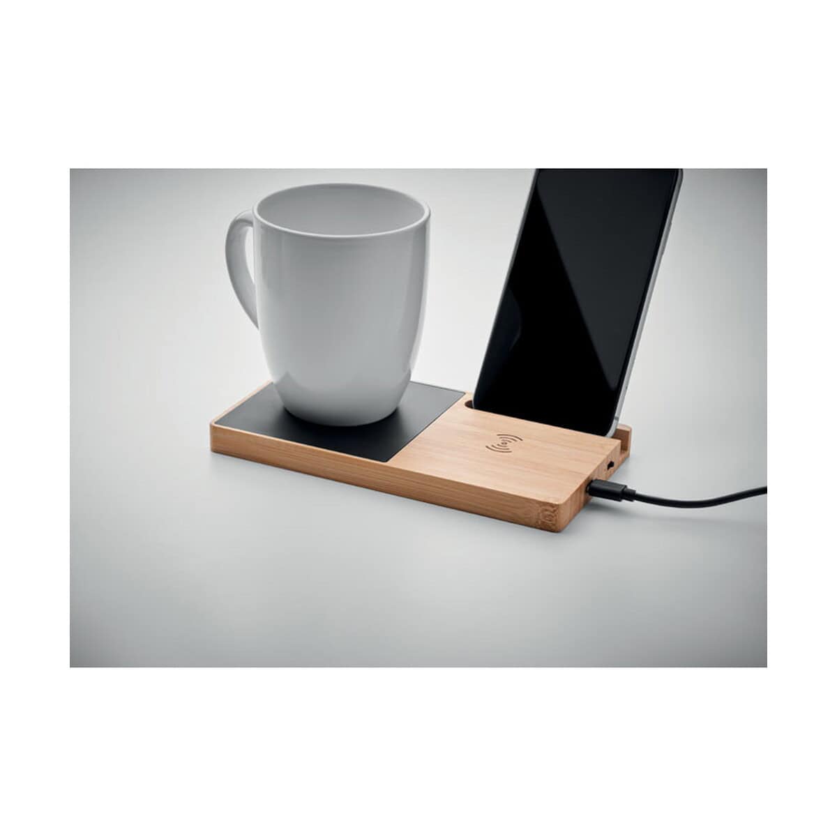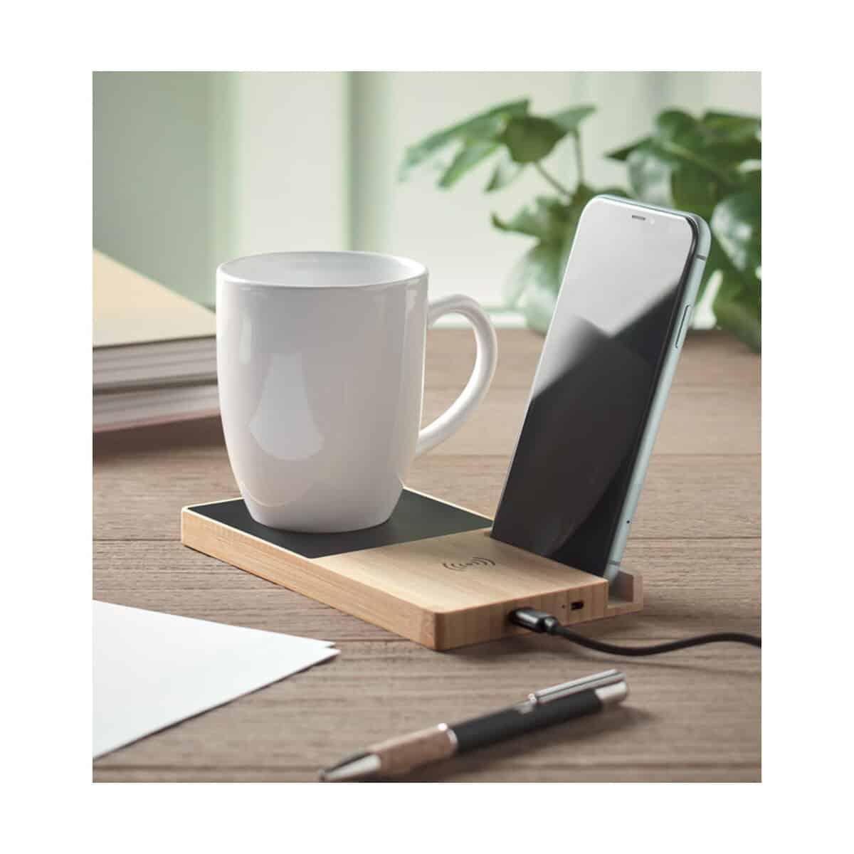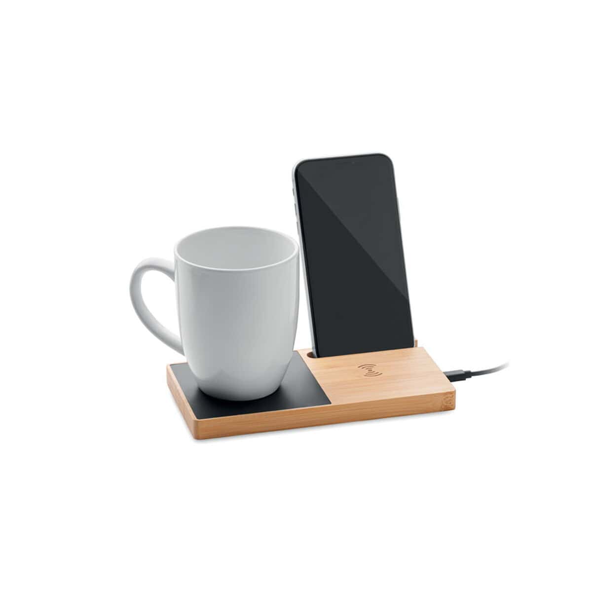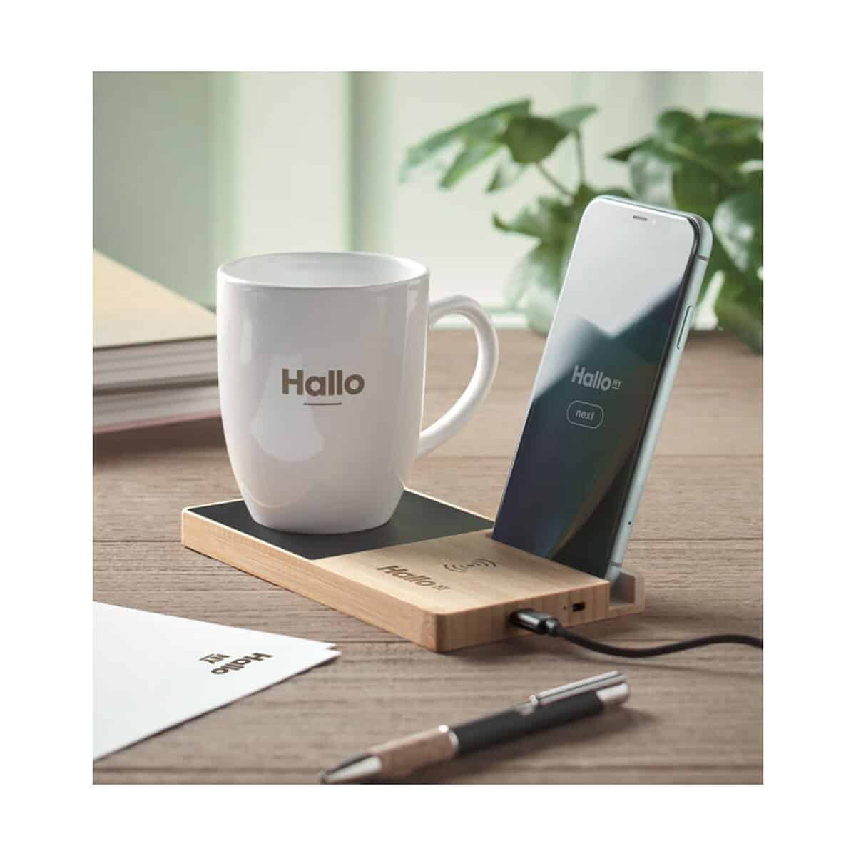 Urządzenie zaskakuje dbałością o szczegóły: wymiary 9,7 × 18,4 × 1,4 cm pozwalają na wygodne ustawienie nawet na niewielkim biurku, a waga 0,233 kg gwarantuje stabilność kubka na podgrzewanej podstawce. Moc wyjściowa DC 9V/1,67 A (15 W) sprawia, że Twój telefon – kompatybilny z najnowszymi Androidami oraz iPhone® 8, X i nowszymi – naładuje się szybko i bez kabli. Dodatkowo naturalny, drewniany odcień bambusa świetnie eksponuje logo lub dowolny nadruk, nadając całości unikalny charakter.