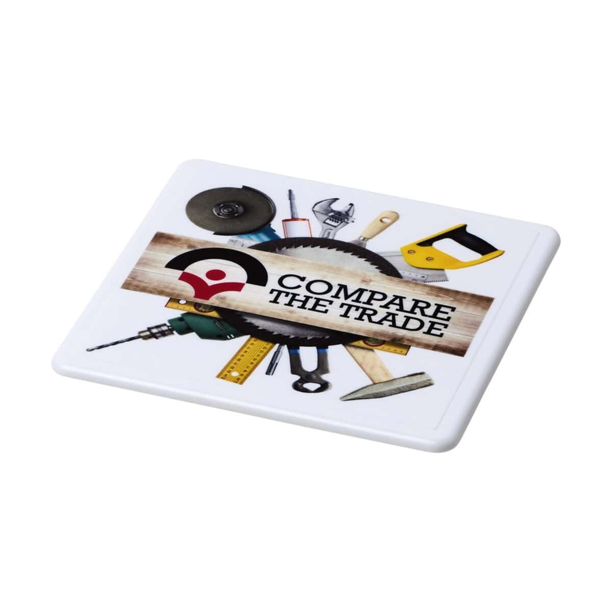 Kwadratowy kształt ze ściętą krawędzią został zaprojektowany tak, aby wpasować się zarówno w nowoczesne, jak i klasyczne aranżacje wnętrz. Gładka, biała powierzchnia to prawdziwe pole do popisu dla każdej marki – można na niej umieścić wyraźny nadruk, kolorowe logo lub inspirującą grafikę, tworząc przy tym niepowtarzalny nośnik reklamy. To sprawia, że Podkładka kwadratowa Renzo wykonana z tworzywa sztucznego świetnie sprawdzi się jako reklamowy upominek w restauracjach, kawiarniach, firmach cateringowych, a także w branży spożywczej, hotelarskiej czy eventowej.