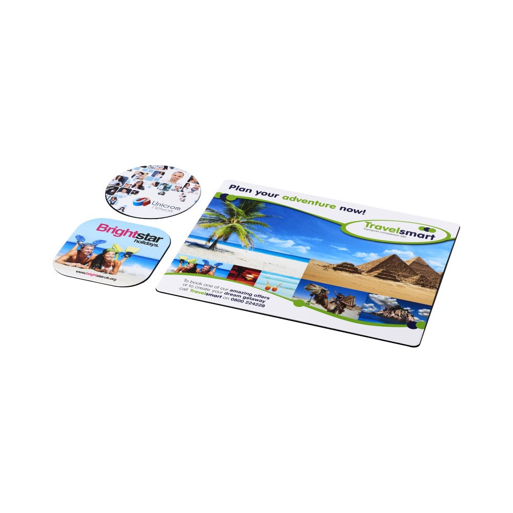 Zestaw podkładek Brite-Mat to doskonały wybór dla każdego, kto szuka trwałych i estetycznych podkładek pod mysz. W zestawie znajdują się trzy podkładki: prostokątna (0,3 x 19 x 21 cm), prostokątna (0,3 x 9,5 x 9,5 cm) oraz okrągła (0,3 x ø9,5 cm), wykonane z materiału o wysokiej odporności na zarysowania i łatwe w czyszczeniu. Wszystkie podkładki są wyposażone w antypoślizgowe spodnie, które zapobiegają przesuwaniu się myszy. Każda z podkładek jest niezwykle trwała, dzięki czemu będzie służyć przez długi czas. Jest to wyjątkowy zestaw podkładek, który sprawdzi się w każdej sytuacji.