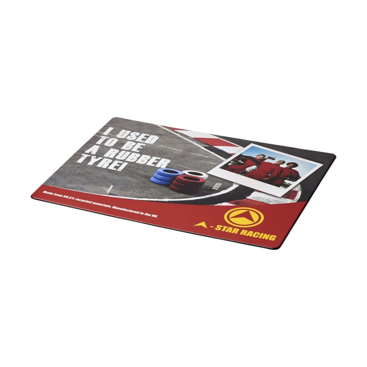 Podkładkę można zastosować w biurze, domu, pracowniach graficznych, salach szkoleniowych, a także w gamingowych strefach relaksu. Jej antypoślizgowa guma z recyklingu stabilizuje się na każdym blacie, a wytrzymała powierzchnia bez trudu znosi intensywne użytkowanie. Wybierając ten produkt, dajesz drugie życie zużytym oponom i zyskujesz nieprzeciętnie atrakcyjne narzędzie promocyjne, które trafia prosto w ręce Twoich odbiorców. ♻️