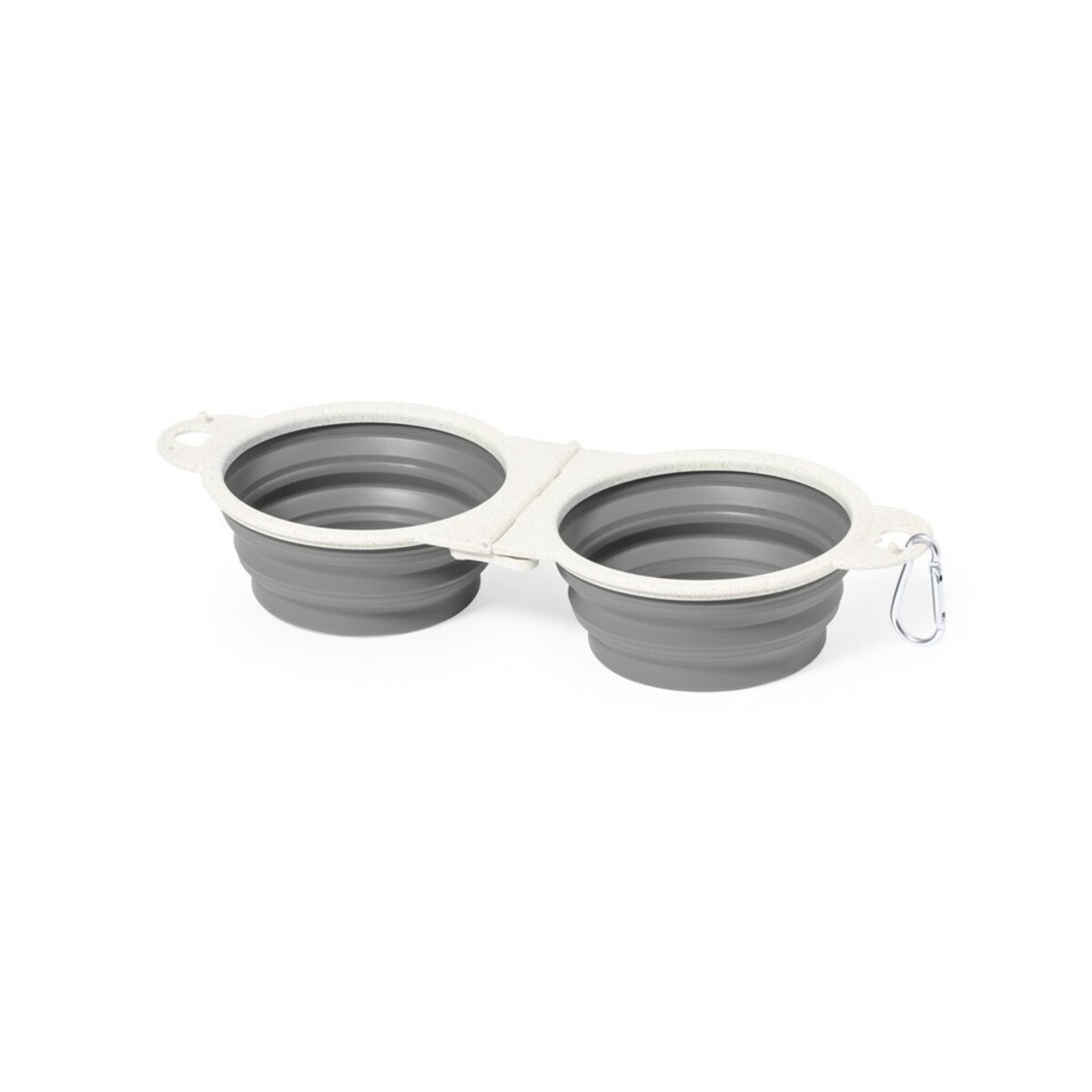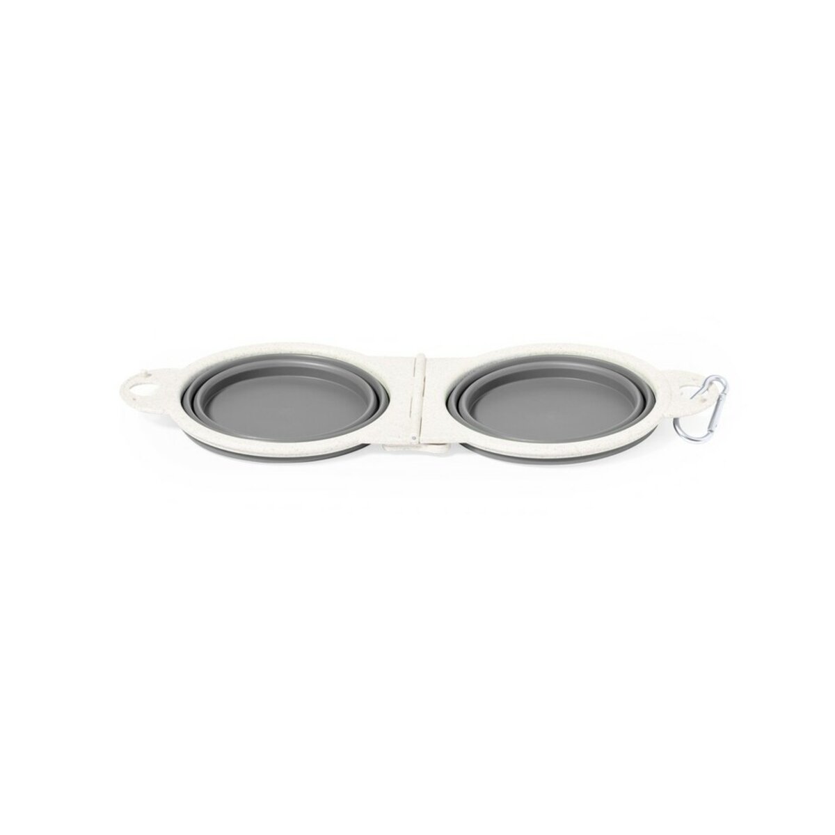 Podwójna miska dla psa z elementami ze słomy pszenicznej, składana, karabińczyk