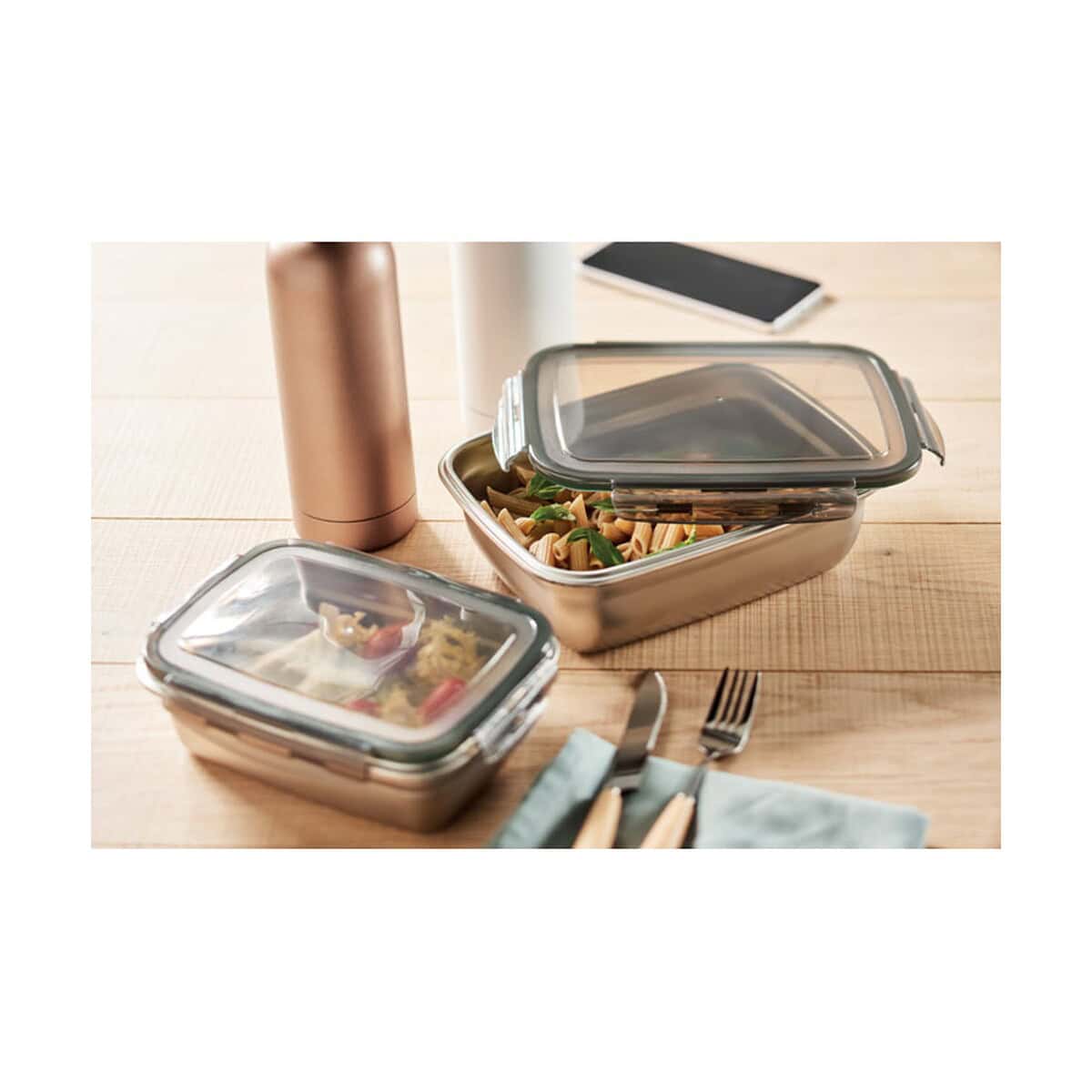 Użyj tego lunchboxu jako elementu paczek onboardingowych, prezentu świątecznego lub akcesorium w pakietach motywacyjnych. Jego uniwersalny, minimalistyczny design wpasuje się w każdą identyfikację, a trwały reklamowy nadruk zagwarantuje, że marka będzie widoczna przez długie lata. Postaw na ten praktyczny, a zarazem stylowy produkt i podaruj klientom lub zespołowi coś naprawdę wartościowego 😉. Dzięki niemu Twoje działania reklamowe zyskają nowy, smaczny wymiar!