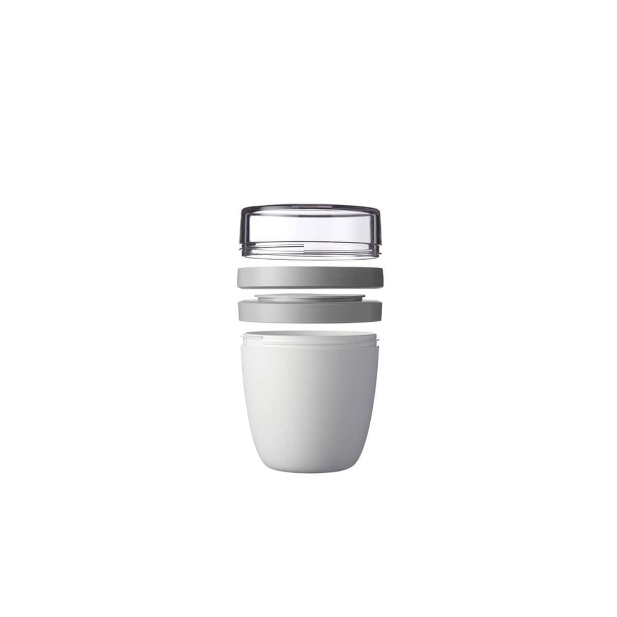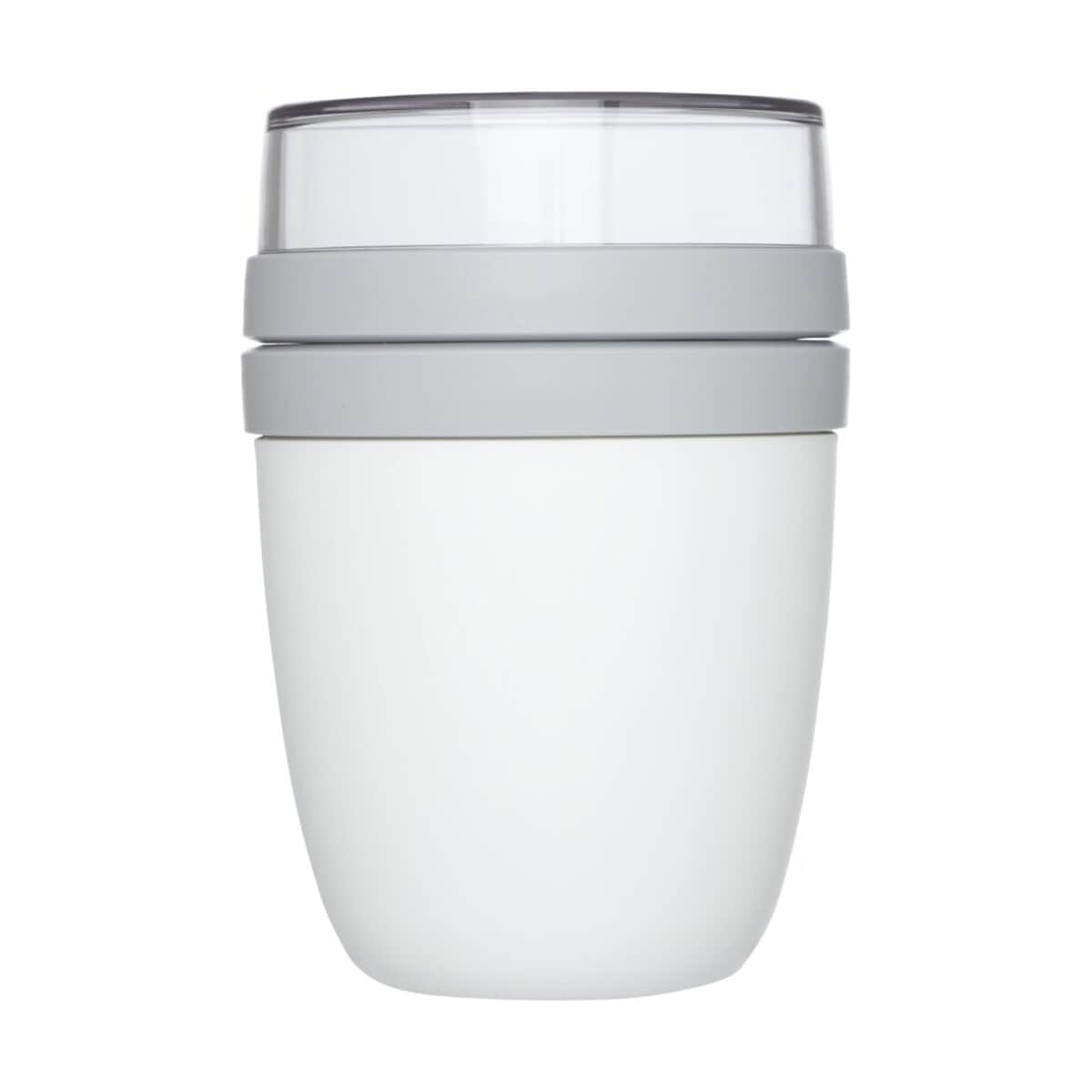 Pojemnik na lunch Ellipse to znakomite, funkcjonalne rozwiązanie dla wszystkich, którzy chcą zabierać ze sobą ulubione posiłki w zdrowy i bezpieczny sposób. Dwie oddzielne komory – 200 ml i 500 ml – pozwalają przechowywać składniki osobno, dzięki czemu sałata zachowa chrupkość, a sos pozostanie w swoim miejscu. Każda część ma własną pokrywę, więc zawartość zawsze pozostaje czysta i apetyczna. Wykonany z trwałego polipropylenu oraz przezroczystego PCTG, pojemnik jest wodoszczelny, nie zawiera BPA, można go myć w zmywarce, mrozić, a dolną komorę podgrzewać w kuchence mikrofalowej (bez pokrywki).