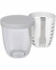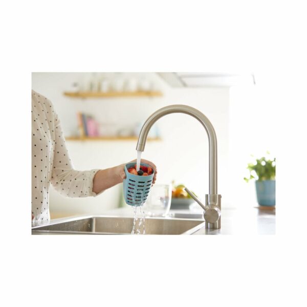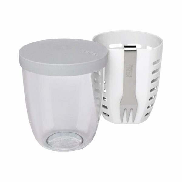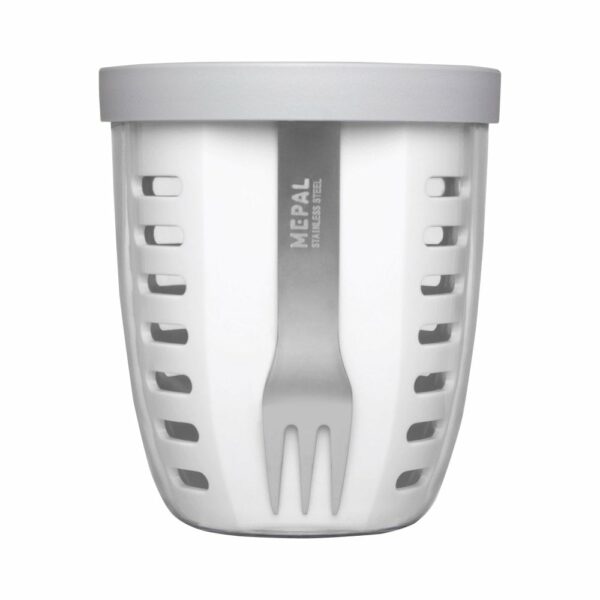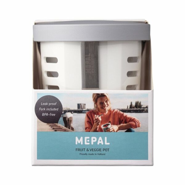 Pojemnik na owoce lub warzywa Mepal to praktyczny gadżet do kuchni, który ułatwia płukanie zawartości. Wyposażony jest w widelce ze stali nierdzewnej oraz durszlak, który pozwala odcedzić potrawy na miejscu. Dodatkowo, durszlak można wyjąć i użyć pojemnika jako miski na sałatkę. Pokrywkę stosuje się do przechowywania przekąsek i lunchu, a pojemność 600ml i wytrzymały materiał umożliwiają mycie w zmywarce. Wodoszczelny i wolny od BPA, pojemnik zapewni Ci wygodę i trwałość.