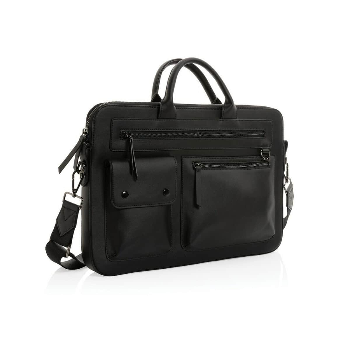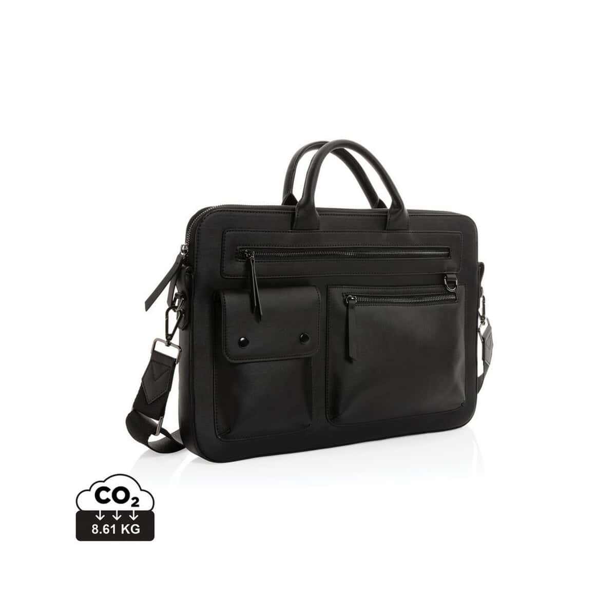 Pokrowiec na laptopa 14″ Swiss Peak, PU z recyklingu to perfekcyjny wybór, gdy chcesz połączyć elegancję z troską o środowisko. Wykonany z certyfikowanego PU z recyklingu (aż 61% zawartości odzyskanego surowca) oraz wolny od PVC, przyczynia się do redukcji śladu węglowego – wynosi on jedynie 5,67 kg CO₂. Smukłe wymiary 41 × 6 × 37,5 cm pozwalają bezpiecznie przenosić większość 14-calowych komputerów, a miękkie wykończenie wewnątrz chroni sprzęt przed zarysowaniami. Dyskretne, czarne wykończenie podkreśla biznesowy charakter produktu, a miejsce na logo ułatwia personalizację. To doskonały gadżet reklamowy, który doda prestiżu każdej kampanii 😊