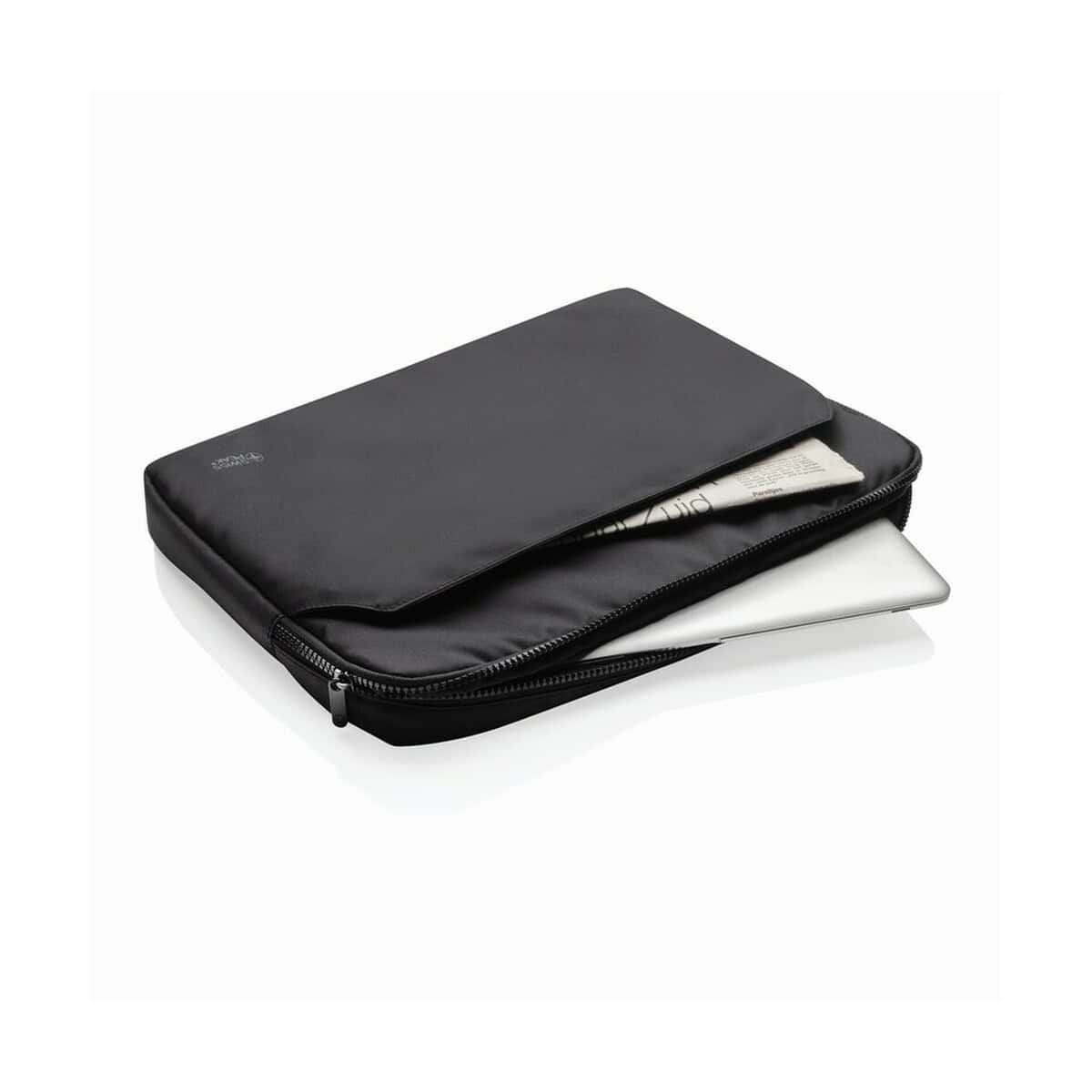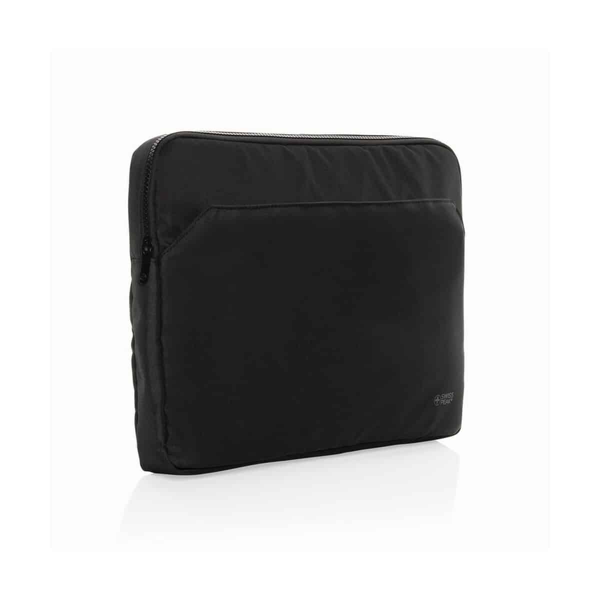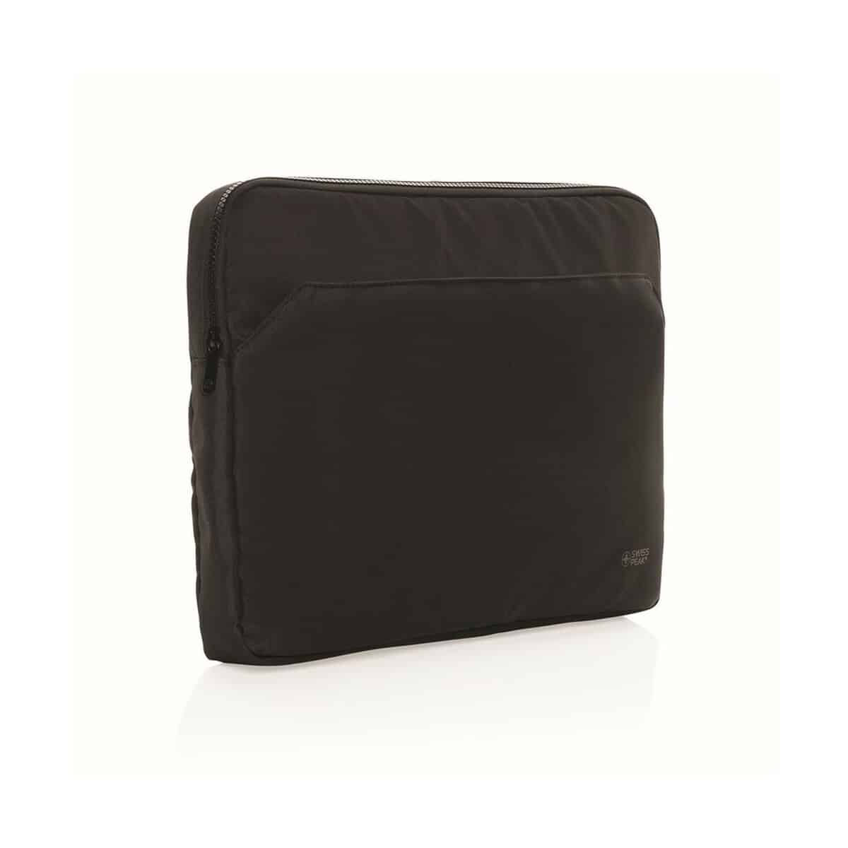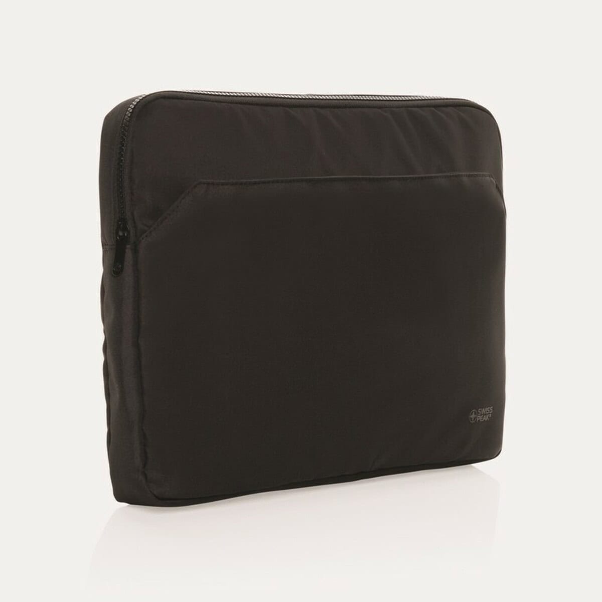 Pokrowiec na laptopa 15,6″ AWARE™ RPET to wyjątkowo wszechstronny i efektowny gadżet firmowy, który łączy elegancję z ekologiczną odpowiedzialnością. Wykonany w 100% z recyklingowanego poliestru RPET, z miękką podszewką RPET, chroni sprzęt przed zarysowaniami oraz wstrząsami, a jednocześnie pomaga redukować ślad węglowy. Solidne, trwałe zamki błyskawiczne Swiss Peak gwarantują bezproblemowe użytkowanie, a przednia kieszeń na akcesoria pozwala zachować porządek w ładowarkach, myszkach i dokumentach. Smukły profil 38,5 × 4,5 × 28 cm mieści większość laptopów 15,6″, co czyni go świetną propozycją dla menedżerów, handlowców, studentów oraz podróżujących profesjonalistów. Uniwersalny, czarny kolor znakomicie komponuje się z każdym strojem biznesowym, nadając całości profesjonalny charakter 😊