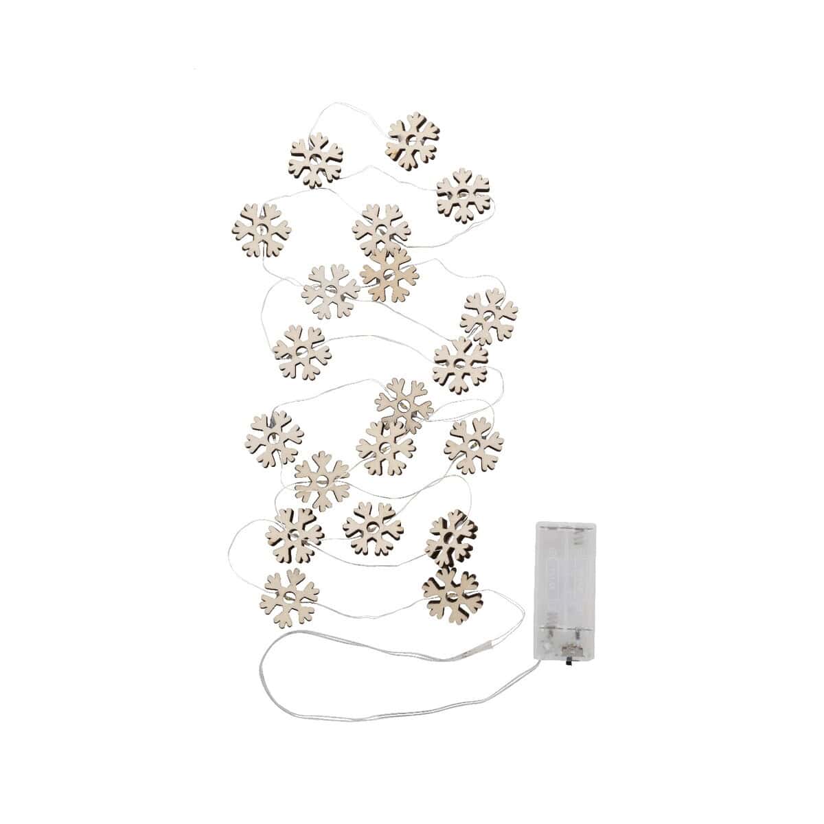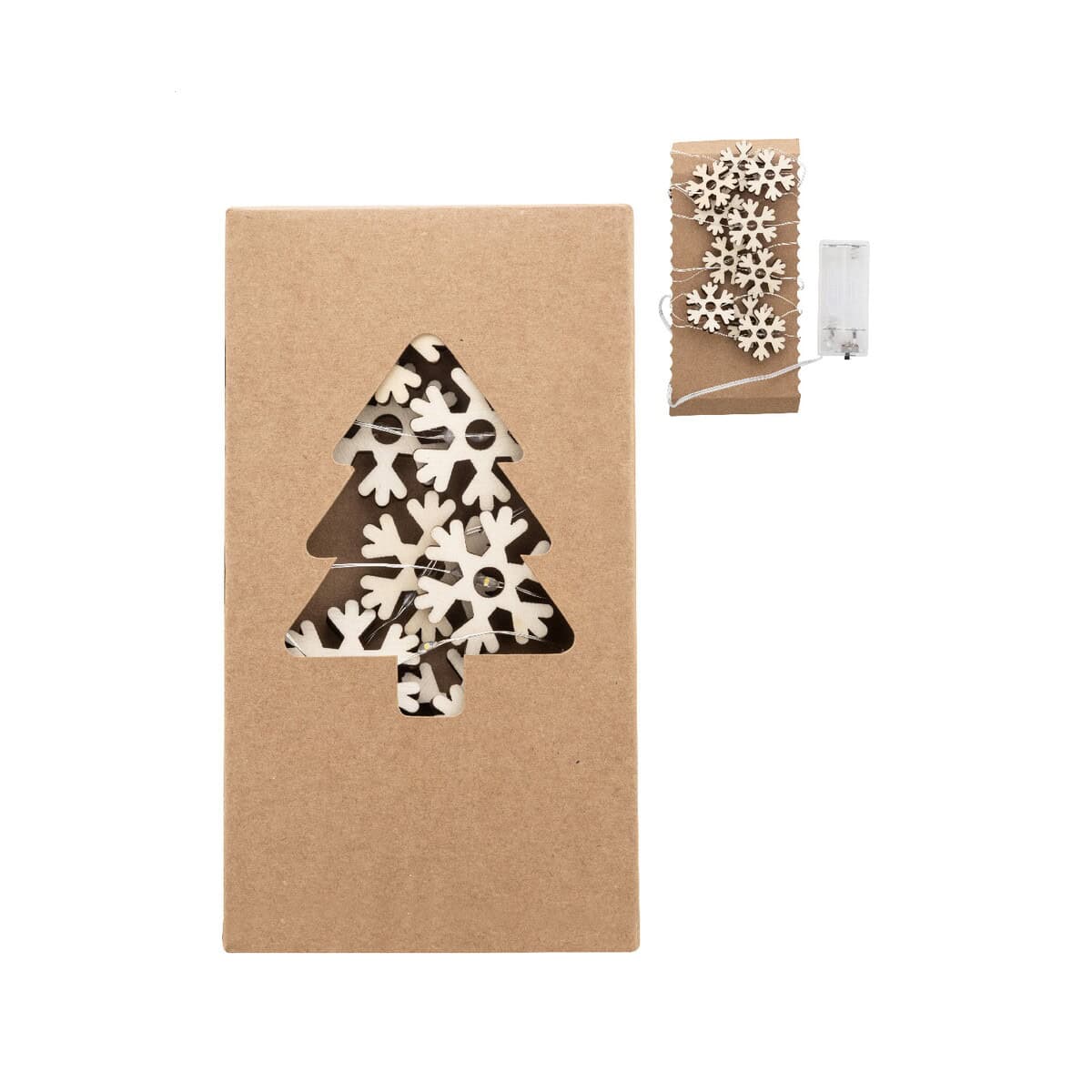 Polaris lampki choinkowe to świąteczny łańcuch świetlny, który wprowadzi magiczną aurę wszędzie tam, gdzie zagości. 20 energooszczędnych lampek LED w kształcie płatków śniegu, zasilanych dwiema bateriami AA, rozświetli biuro, stoisko targowe lub domową przestrzeń, nie wymagając dostępu do gniazdka. Wygodny przycisk ON/OFF na obudowie baterii pozwala szybko sterować światłem, a naturalny drewniany korpus (wymiary 90×165×35 mm, waga 63,6 g) podkreśla ekologiczny charakter produktu. 🎄