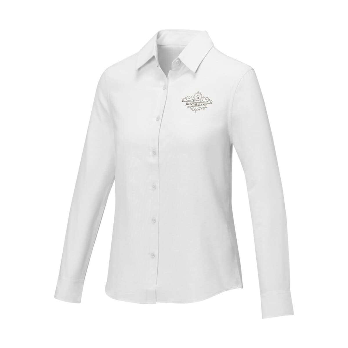 Na szczególną uwagę zasługuje jej waga 275 g, która w połączeniu z materiałem Oxford 55% bawełna, 45% poliester, 130 g/m² gwarantuje lekkość, a jednocześnie solidność i odporność na zagniecenia. Dopasowany krój pięknie podkreśla kobiecą sylwetkę, a odrywana etykieta zwiększa komfort noszenia. Bogata paleta odcieni – od klasycznej czerni, przez czystą biel, aż po odcienie niebieskiego i szarości – pozwala dopasować koszulę do identyfikacji wizualnej każdego przedsiębiorstwa.