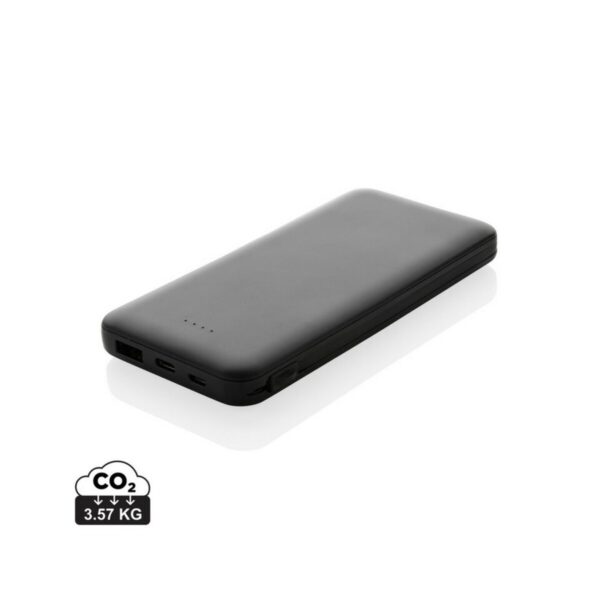 Obudowa wykonana z wytrzymałego aluminium i ABS z recyklingu (21% całkowitej zawartości materiałów), dodaje trwałości, a jednocześnie dba o środowisko. Wymiary 14.5 x 7.4 x 1.6 cm oraz elegancki, czarny kolor sprawiają, że Power bank 10000 mAh Lockhart, zintegrowane kable jest zarówno kompaktowy, jak i stylowy.