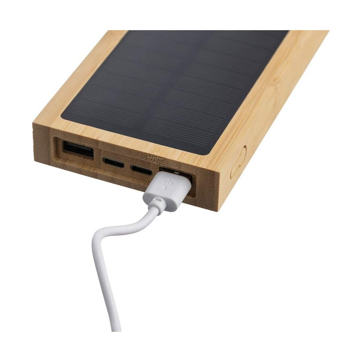 Power bank 10000 mAh z ładowarką słoneczną to prawdziwie wszechstronny gadżet, który zaskoczy każdego miłośnika technologii i ekologii 😊. Wykonany z naturalnego bambusa, łączy nowoczesność z dbałością o środowisko, dlatego znakomicie sprawdzi się jako upominek reklamowy podczas targów zrównoważonego rozwoju, festiwali outdoorowych czy konferencji branży IT. Jego wymiary 14,9 x 7,8 x 2 cm i waga 200 g czynią go poręcznym towarzyszem codziennych wypraw, a brązowy kolor i eleganckie brązowe pudełko podkreślają naturalny charakter produktu.
