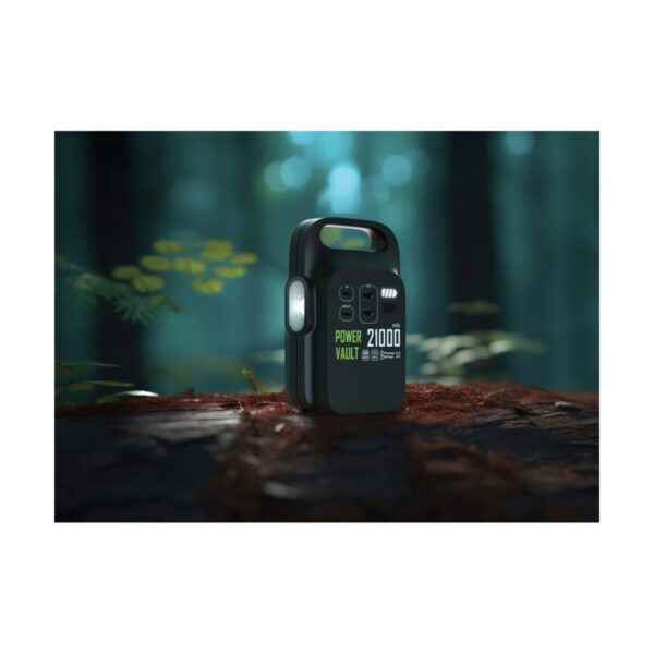 Produkt wyposażony jest w jasną lampkę o mocy 120 lumenów, co czyni go idealnym towarzyszem podczas campingów lub awaryjnych sytuacji. Dodatkowo wyróżnia się możliwością ładowania manualnego za pomocą zamontowanej z tyłu korby, co jest nieocenione w sytuacji, kiedy brak jest dostępu do źródła prądu. Power bank 21000 mAh Power Vault posiada także trzy wyjścia: dwa typu USB oraz jedno USB typu C, umożliwiając jednoczesne ładowanie wielu urządzeń.