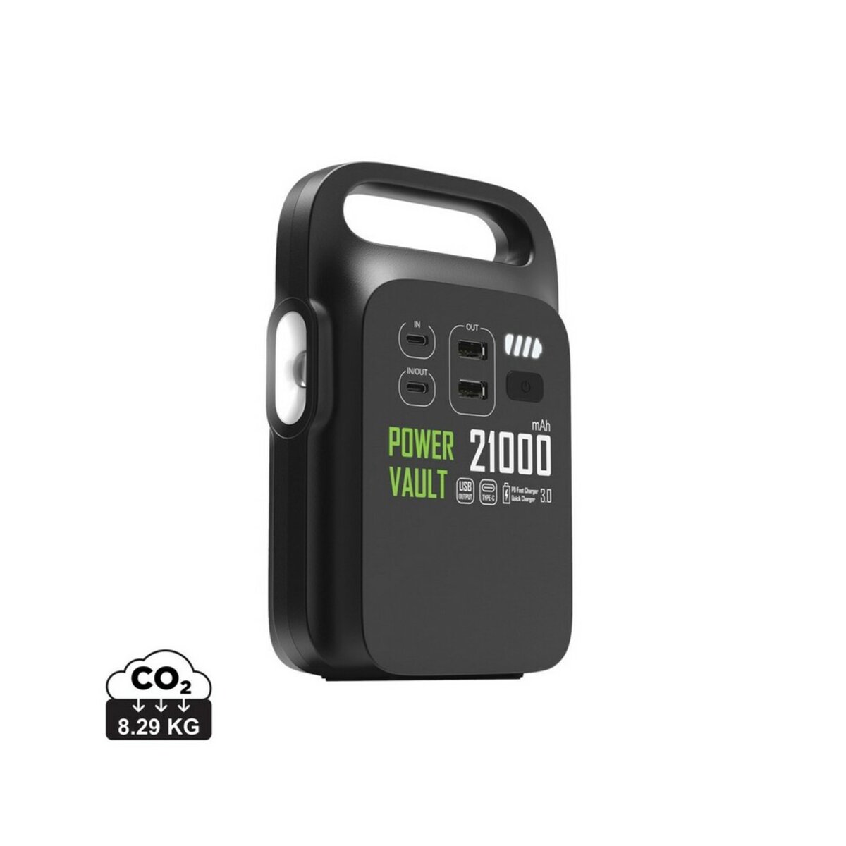 Potężny, niezawodny i przyjazny środowisku Power bank 21000 mAh Power Vault to must-have każdego miłośnika technologii. Został zaprojektowany, aby sprostać wymaganiom najbardziej aktywnych użytkowników, będąc równocześnie odpornym na wodę zgodnie z normą IPX5.