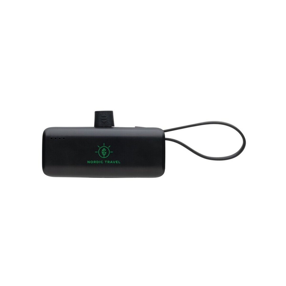 Produkt wykonany z ABS i TPE z recyklingu, z certyfikatem RCS, podkreśla nasze zaangażowanie w ochronę środowiska; 19% całkowitej wagi przedmiotu to materiały z recyklingu. Oprócz tej eko-innowacji, power bank ma kompaktowe wymiary 8,5 x 2,5 x 4,5 cm i waży tylko 98 gramów, co czyni go wyjątkowo przenośnym i łatwym w obsłudze.