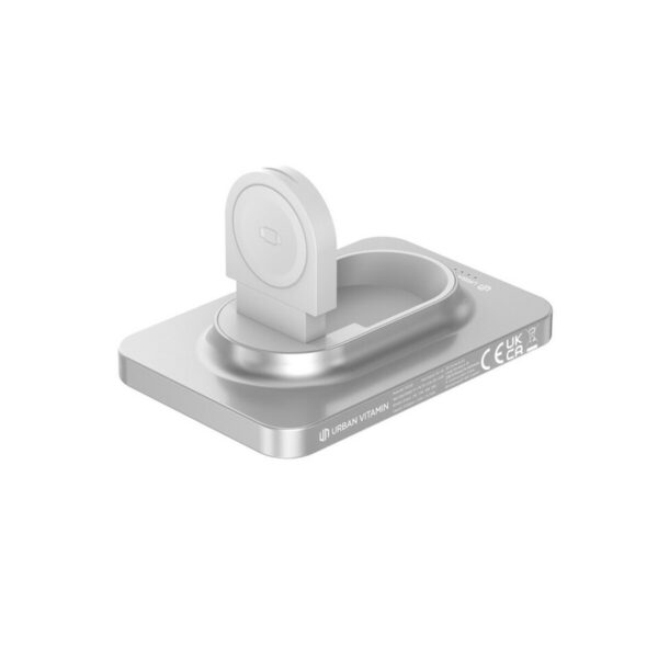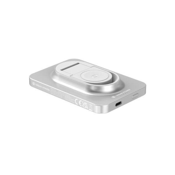 Zintegrowana ładowarka do zegarków iOS sprawia, że Power bank 5000 mAh Urban Vitamin Malibu, RABS jest utylitarnym gadżetem, który posłuży nie tylko do ładowania smartfonów, ale również innych urządzeń. Został wykonany z aluminium i ABS z recyklingu z certyfikatem RCS, co czyni go produktem przyjaznym dla środowiska. 🌱