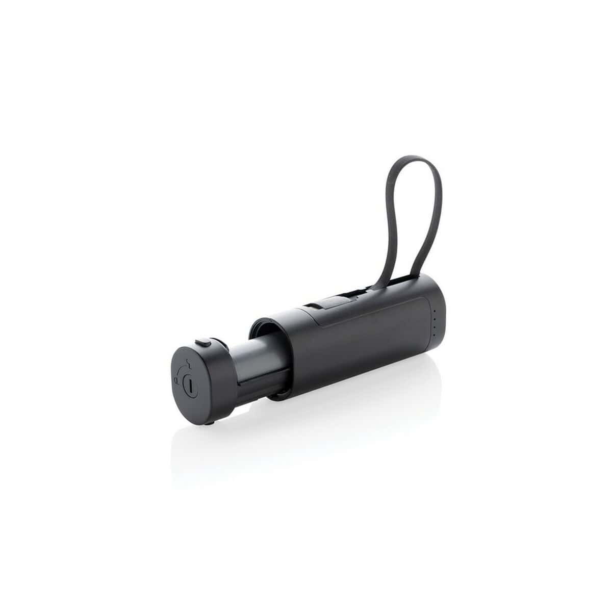 Ten powerbank o wymiarach 10,5 × 3,8 × 3,1 cm i wadze zaledwie 125,3 g jest nie tylko poręczny, ale też gotowy na intensywne użytkowanie. Wejście 5 V/2,1 A oraz wyjście 5 V/2,4 A gwarantują szybkie ładowanie smartfonów, słuchawek czy kamer sportowych. Czerń obudowy stanowi perfekcyjne tło na firmowe logo bądź efektowny nadruk, dzięki czemu Power bank 5000 mAh, wymienialne baterie stanie się mobilną wizytówką Twojej marki.