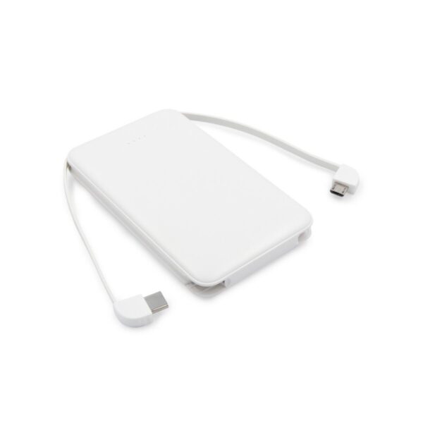 Oferowany w kolorach białym i czarnym, wykonany z wysokiej jakości materiału ABS, Power bank 5000 mAh ze zintegrowanymi kablami stanowi praktyczne i eleganckie akcesorium, które z pewnością zadowoli każdego użytkownika. 📱