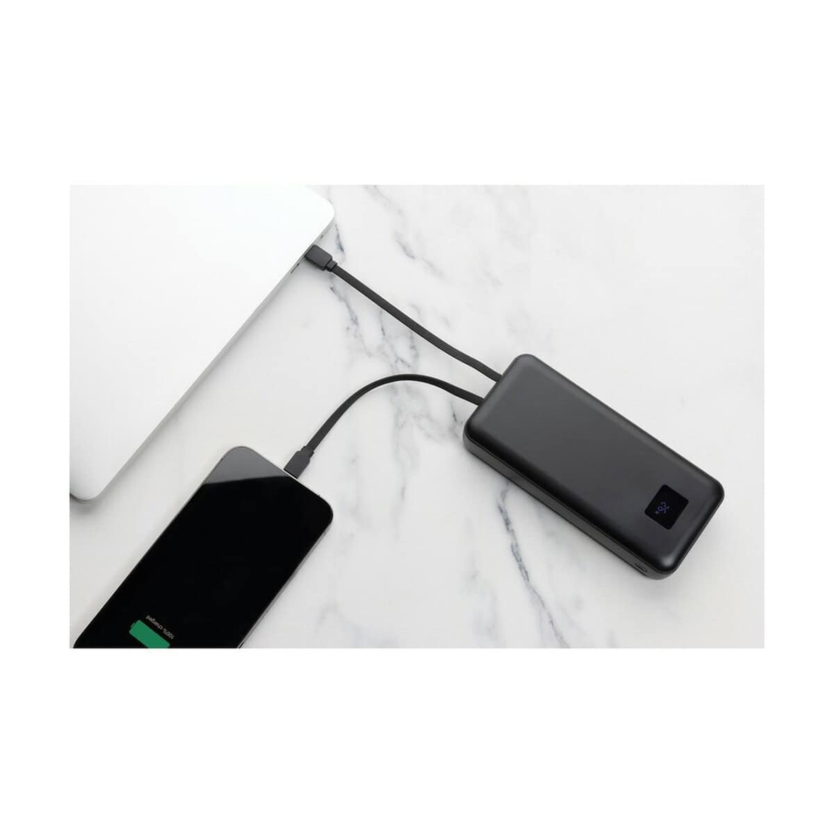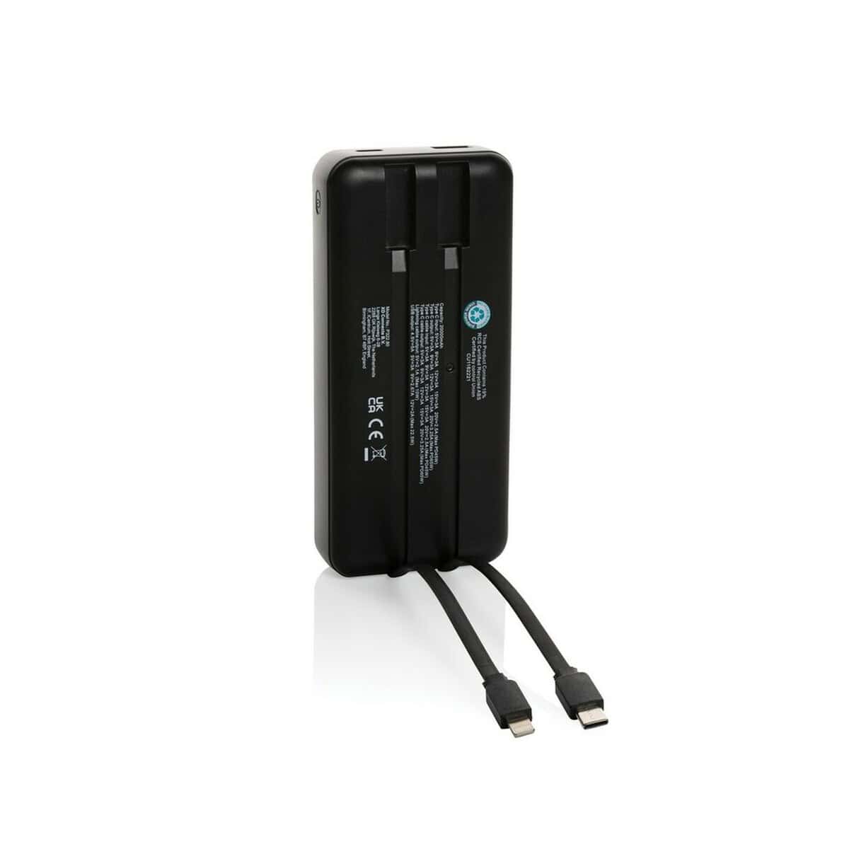 Obudowa z ekologicznego ABS z recyklingu z prestiżowym certyfikatem RCS oraz niski ślad węglowy 7,58 kg CO₂ podkreślają troskę o środowisko, co czyni ten produkt szczególnie atrakcyjnym w kampaniach marek stawiających na zrównoważony rozwój. Wbudowane, zawsze dostępne zintegrowane kable USB-C i iOS oraz czytelny wyświetlacz LED prezentujący poziom energii gwarantują bezproblemową obsługę nawet w terenie.