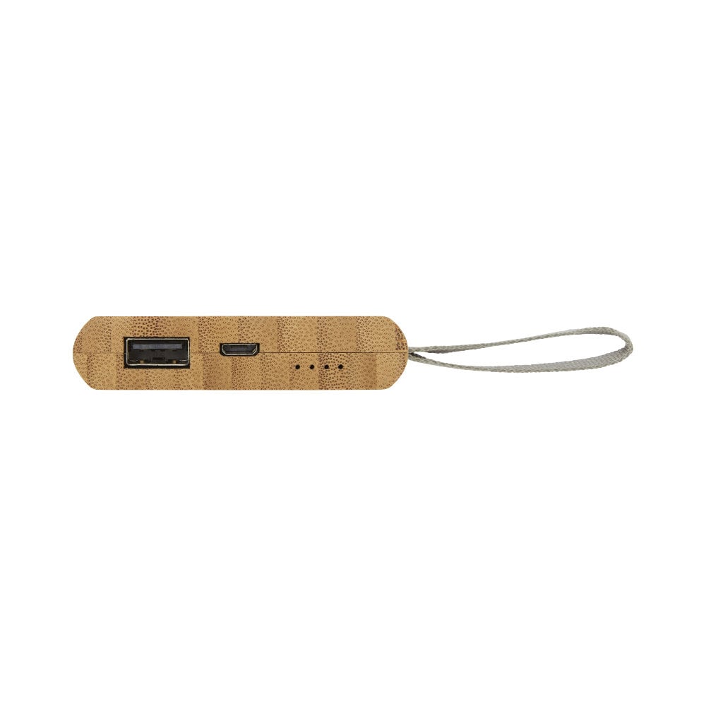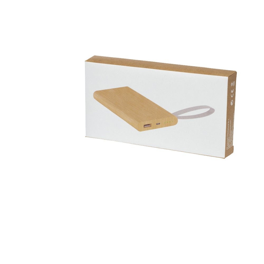Nasz powerbank o pojemności 5 000 mAh wykonany jest z naturalnego bambusa, dzięki czemu jest wyjątkowo wytrzymały i lekki. Wyposażony w lampki sygnalizacyjne LED oraz taśmę wykonaną z materiału RPET, idealnie nadaje się do ładowania telefonów komórkowych i innych urządzeń cyfrowych. W zestawie znajdziesz również kabel Micro-USB do ładowania. Dostarczany w pudełku wykonanym w 100% z materiałów z certyfikatem FSC, wraz z instrukcją obsługi otrzymaną również z certyfikatem FSC. Pamiętaj, że ze względu na naturalny materiał, jakim jest bambus, mogą występować niewielkie różnice w kolorze i rozmiarze, które mogą mieć wpływ na ostateczny efekt dekoracji.