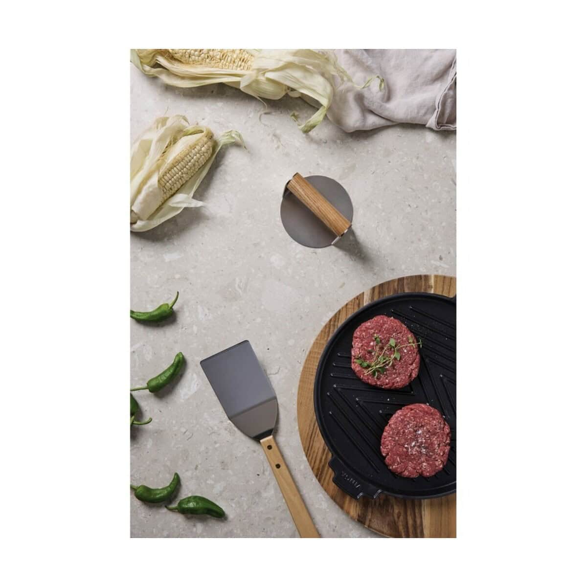Dzięki solidnemu uchwytowi z drewna jesionowego prasa umożliwia formowanie równych i soczystych kotletów, minimalizując ich rozpad podczas smażenia czy grillowania. Można jej używać nie tylko do burgerów wołowych; doskonale poradzi sobie z kotletami wege, falafelem czy placuszkami na bazie ryb – zastosowania ogranicza jedynie wyobraźnia użytkownika. Ten praktyczny, a zarazem elegancki produkt jest więc perfekcyjnym towarzyszem podczas rodzinnych spotkań, firmowych pikników i pokazów kulinarnych.