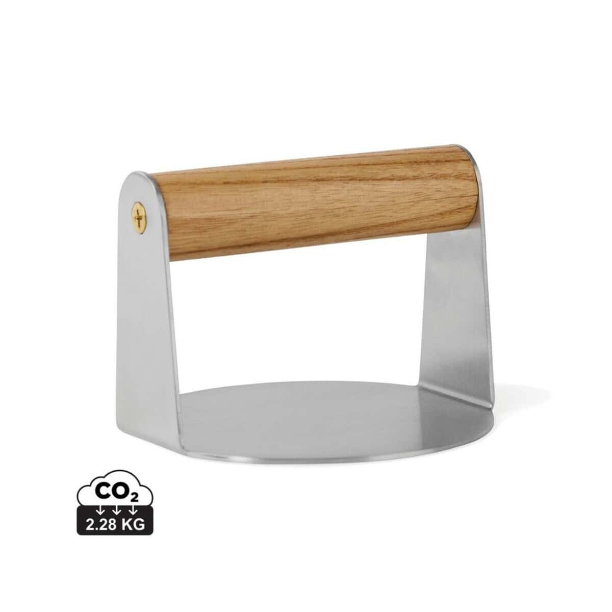 Prasa do hamburgerów VINGA Paso to znakomite połączenie funkcjonalności i elegancji, które sprawi, że przygotowanie perfekcyjnych burgerów stanie się codzienną przyjemnością 🙂. Wykonana ze stali nierdzewnej oraz szlachetnego drewna jesionowego z certyfikatem FSC®, zachwyca solidnością i ekologicznym rodowodem. Kompaktowe wymiary 11 x 10,5 x 8 cm i średnica 11 cm gwarantują wygodę przechowywania oraz kompatybilność z większością patelni i grilli. Naturalny brązowy kolor drewna harmonizuje z metalicznym połyskiem, tworząc styl, który wpasuje się zarówno w nowoczesne, jak i rustykalne kuchnie. 🍔