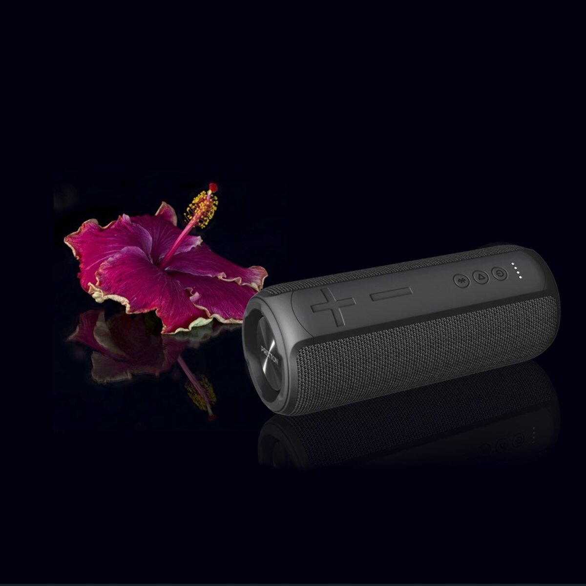 Bluetooth 4.2 IPX7 odporny na zachlapania 30 W głośnik, z mikrofonem i funkcją hands-free do odbierania połączeń telefonicznych. 2200 mAh bateria, która ładuje się w pełni w 3 godziny, a czas odtwarzania wynosi 10 godzin. Wymiary 9,4 x 9 x 11 cm. Waga 380 g.