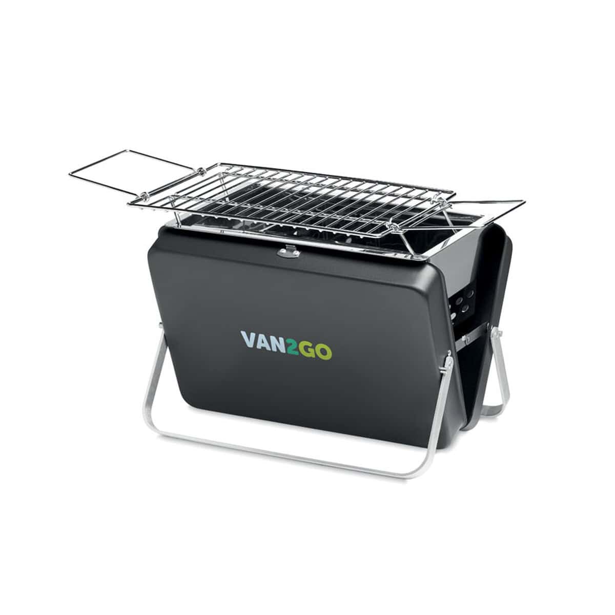 Przenośny grill i stojak BBQ TO GO to sprytny gadżet, który zamieni każdy plenerowy wypad w smakowitą przygodę 😊. Jego walizkowa konstrukcja mieści wszystko, czego potrzeba do błyskawicznego rozpalenia aromatycznego ognia, a po złożeniu zajmuje minimum miejsca w bagażniku. Dzięki stalowemu, warstwowemu rusztowi pieczenie mięsa, warzyw lub ryb jest równomierne i szybkie, zaś stabilna podstawka chroni podłoże przed wysoką temperaturą. To wymarzony nośnik logo i efektownego nadruku, bo czarna obudowa tworzy eleganckie, kontrastowe tło dla każdego projektu graficznego.