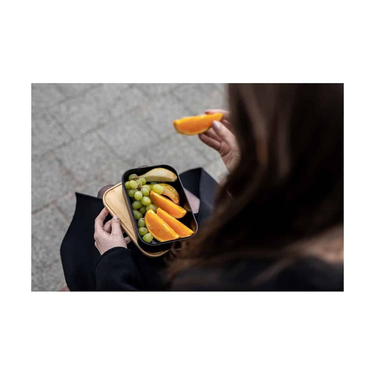 Pudełko śniadaniowe 850 ml, bambusowe wieczko | Weston to znakomity kompan codziennych posiłków, który łączy nowoczesne wzornictwo z troską o środowisko. Elegancka, matowa czerń pojemnika kontrastuje z naturalnym bambusem, tworząc efektowny duet przyciągający uwagę zarówno w biurze, jak i na uczelni. Dzięki temu, że powierzchnia bambusowego wieczka doskonale przyjmuje nadruk, Twoje firmowe logo staje się widoczne przy każdym otwarciu lunchboxu – to subtelna, a zarazem bardzo skuteczna forma promocji 😊.