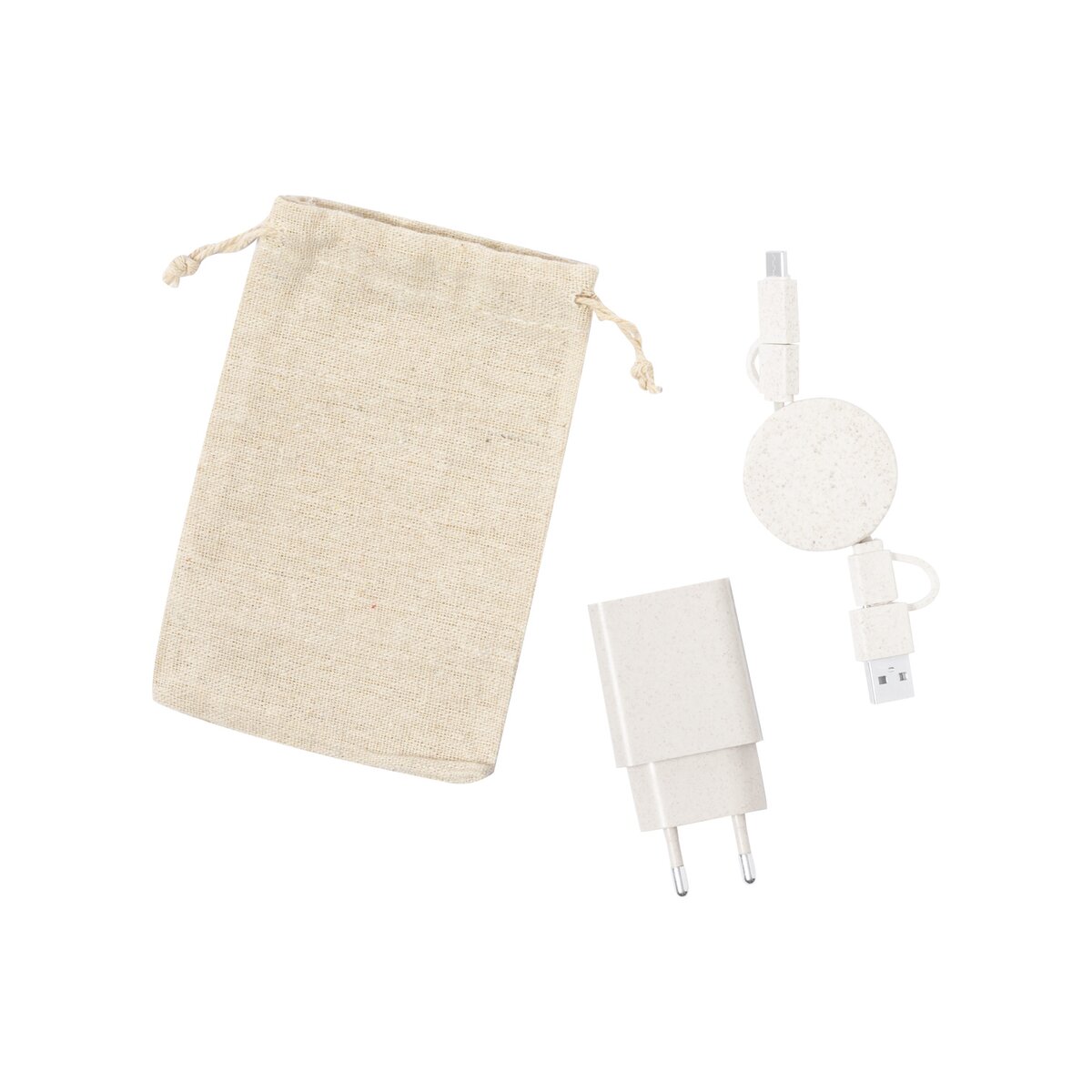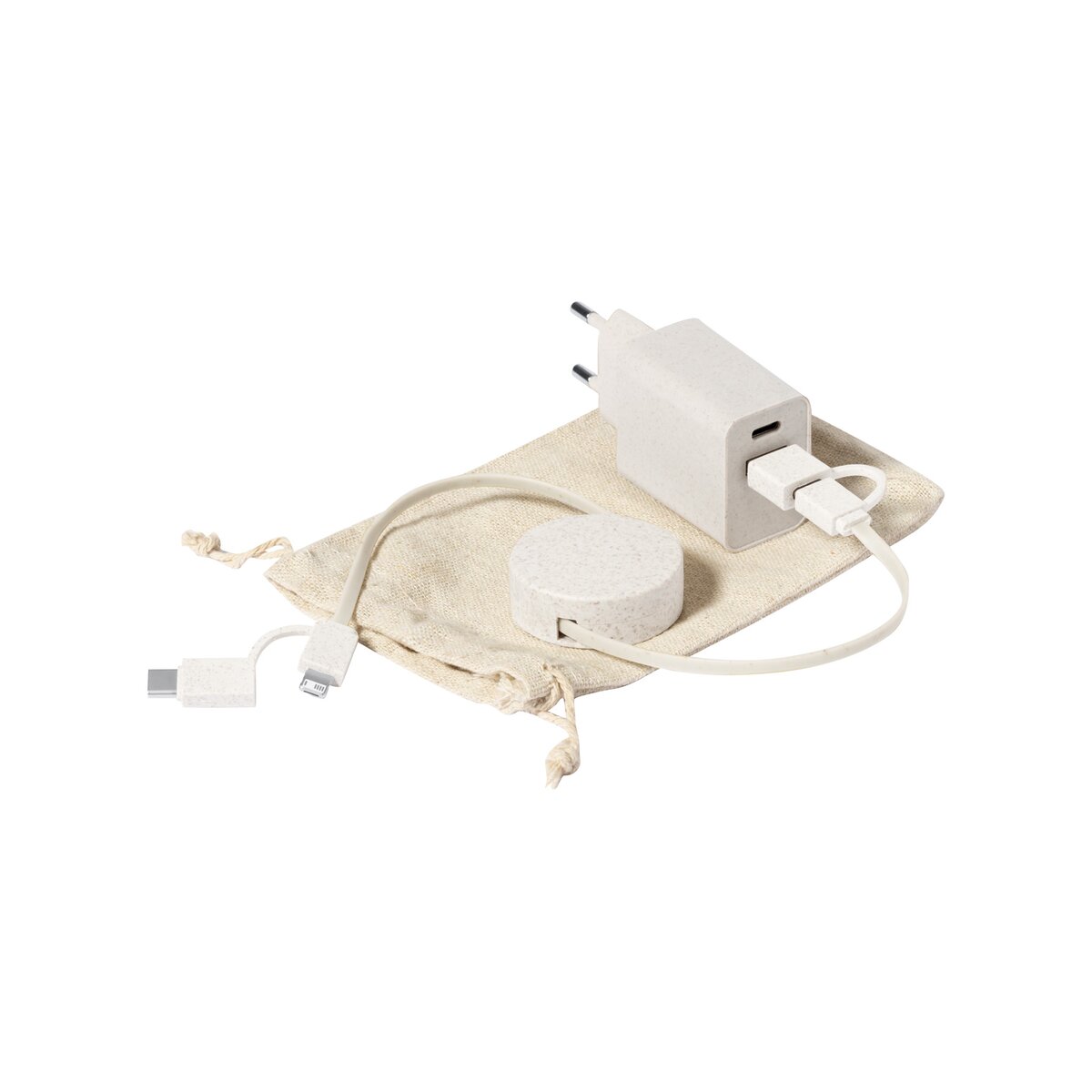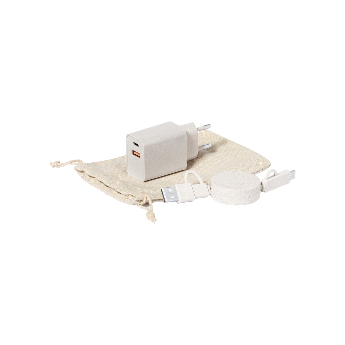 Zestaw zawiera szybko ładującą ładowarkę USB z jednym portem USB oraz jednym portem USB-C, która wspiera technologie PD20W oraz QC3.0, umożliwiając szybkie i efektywne ładowanie Twoich urządzeń. Dzięki dołączonemu zwijanemu kablowi ładującemu USB ze złączami micro USB, USB-C i Lightning, kompatybilność z różnorodnymi urządzeniami jest gwarantowana. Zestaw zapakowany jest w stylowe etui wykonane z bawełny, które nie tylko zabezpiecza akcesoria, ale także podnosi estetykę produktu.
