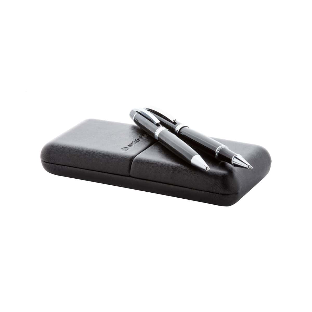 Dzięki wymiarom 180 × 80 × 30 mm etui zmieści się w każdej aktówce, a czarny kolor dodaje profesjonalizmu. Elegancki design, metalowa konstrukcja, etui z imitacji skóry oraz niebieski wkład czynią z tego kompletu produkt wręcz perfekcyjny na podpisywanie umów, prowadzenie notatek czy wręczanie go podczas targów i eventów reklamowych. Zestaw będzie szczególnie atrakcyjny dla menedżerów, prezesów, agentów ubezpieczeniowych, doradców biznesowych oraz studentów kierunków prawniczych i ekonomicznych.