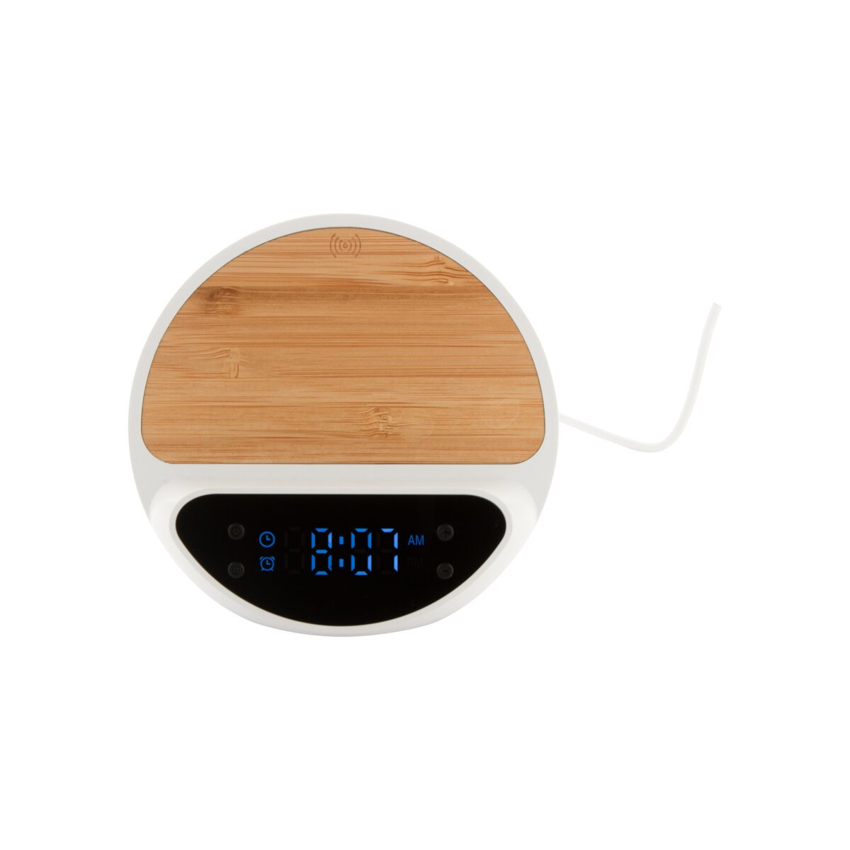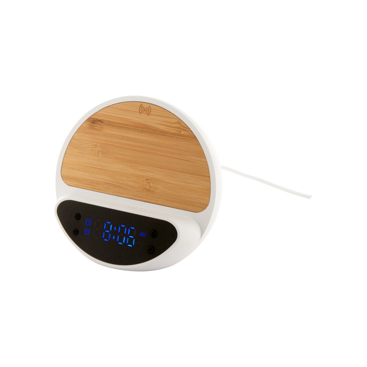 Zapoznaj się z praktycznym i stylowym cyfrowym budzikiem, w którym wykorzystano pomysłową obudowę wykonaną z przetworzonego ABS i bambusa. Wyróżnia się uchwytem na telefon komórkowy i wbudowaną szybką ładowarką indukcyjną o mocy 15 W, co upraszcza codzienne użytkowanie. W zestawie znajdziesz również kabel USB.