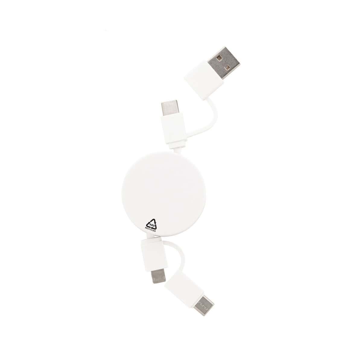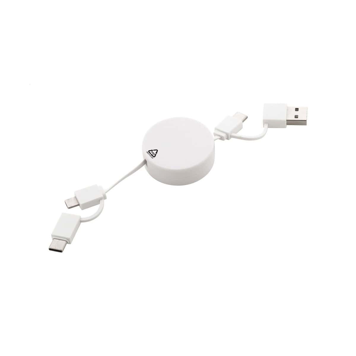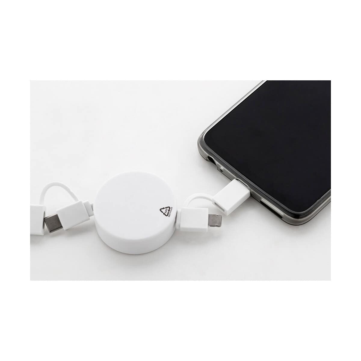 Parametry mówią same za siebie: Wymiary: 1000×41×16 mm, Waga: 27 g, materiał: ABS z recyklingu, kolor: biały – wszystko to czyni go lekkim, poręcznym i jednocześnie wytrzymałym. Teleskopowa konstrukcja gwarantuje brak splątanych kabli, a uniwersalność trzech złączy zadowoli użytkowników smartfonów i tabletów wszystkich wiodących marek.