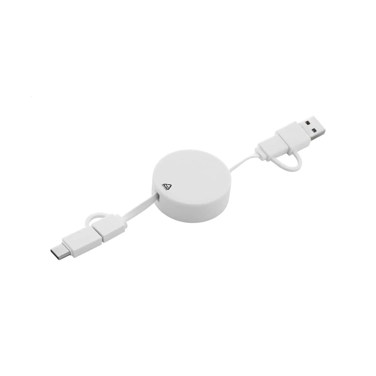 Rascop kabel USB do ładowania RABS to kompaktowy, teleskopowy przewód, który rozciąga się, gdy go potrzebujesz, a po użyciu chowa się w estetycznej obudowie, chroniąc złącza micro USB, USB-C oraz Lightning przed uszkodzeniem. Dzięki wejściom USB i USB-C podłączysz go zarówno do tradycyjnych, jak i najnowszych ładowarek. Ten model powstał z ABS z recyklingu, co podkreśla troskę o środowisko i świetnie wpisuje się w trend eko 🙂.