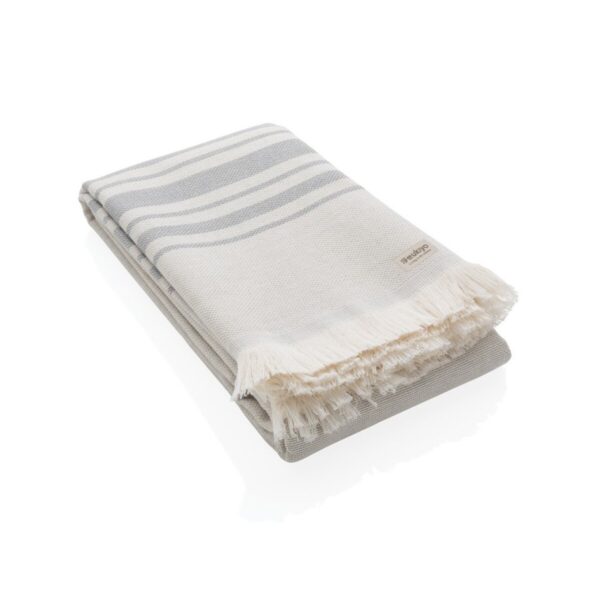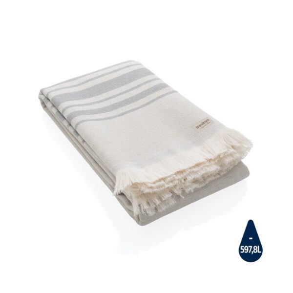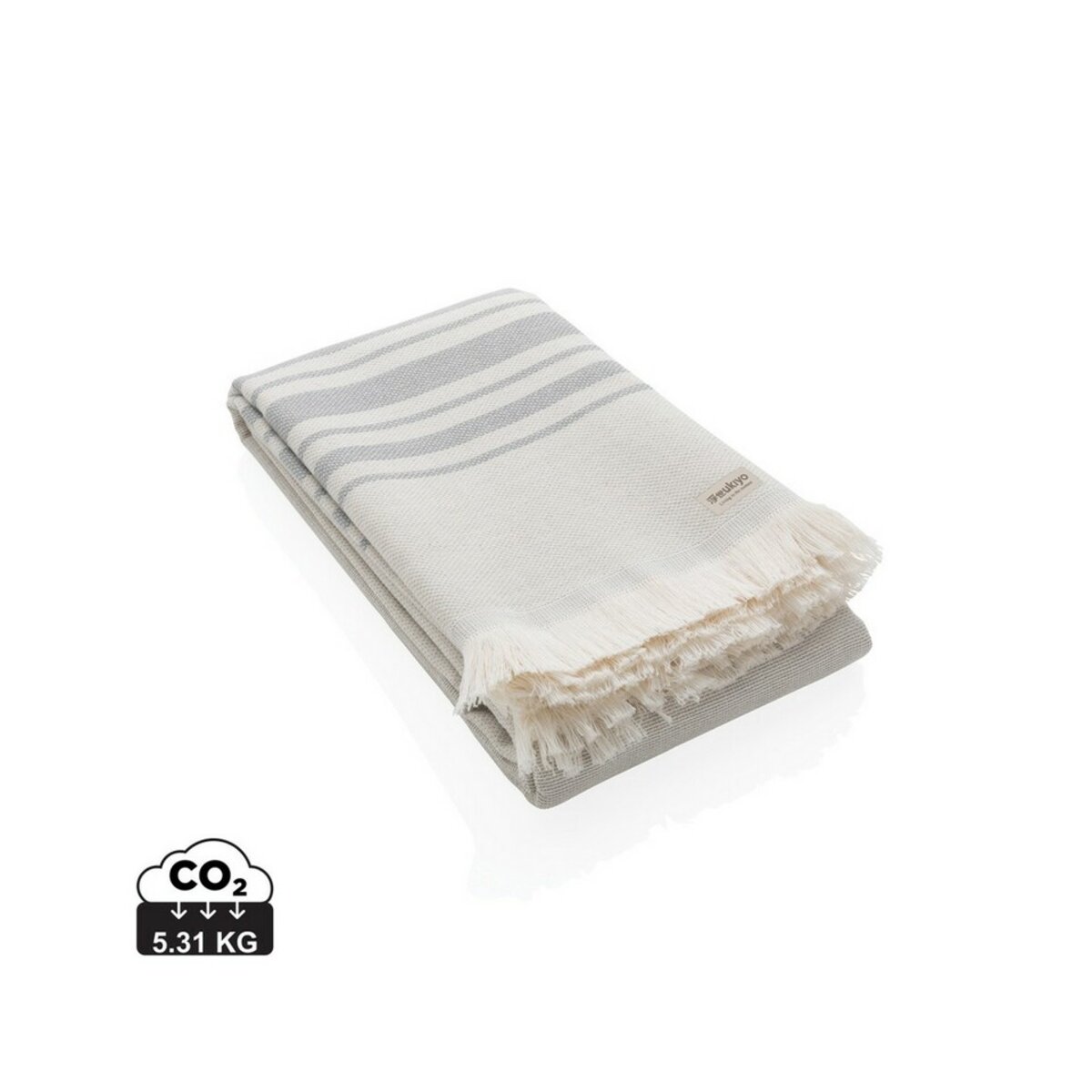 Podróżniczy gadżet, który zachwyca swoją wszechstronnością i jakością – Ręcznik Hammam Ukiyo Yumiko AWARE™ to doskonały wybór dla każdego, kto ceni sobie komfort i styl nawet w trakcie wakacyjnych wypraw. Ten unikatowy ręcznik wykonany jest z połączenia 88% bawełny z certyfikatem OEKO-TEX i 12% bawełny z recyklingu, gwarantując, że podczas jego produkcji nie użyto żadnych szkodliwych substancji ani barwników.