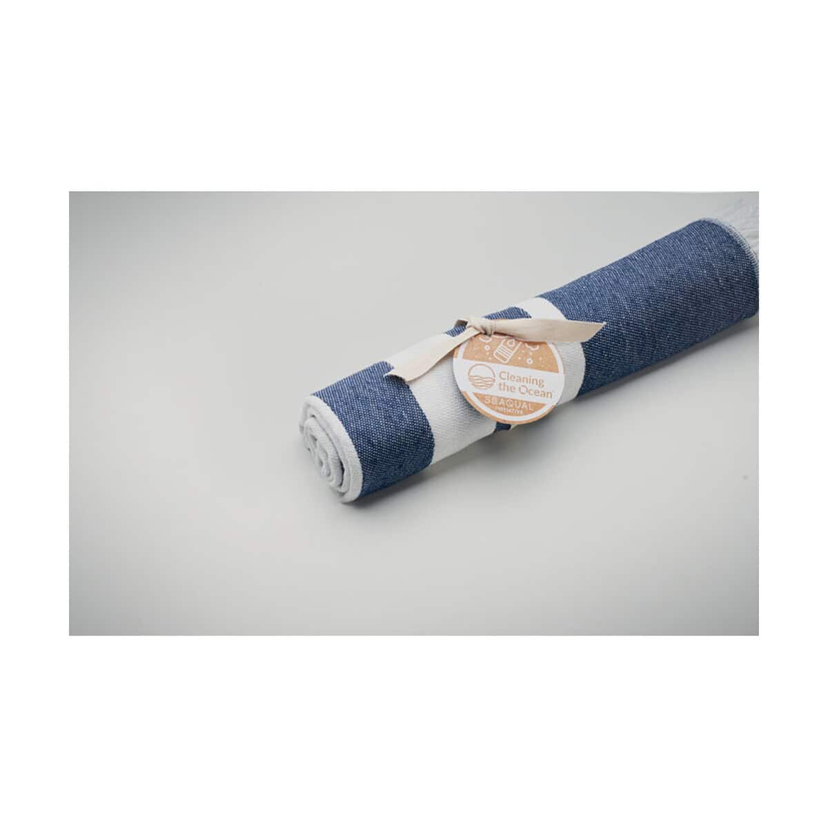 Ręcznik SEAQUAL®hammam 100×170 WAVE to znakomity wybór, gdy szukasz ekologicznego akcesorium, które zachwyci zarówno formą, jak i przesłaniem. Wykonany w 70% z bawełny z recyklingu i w 30% z poliestru SEAQUAL® YARN pozyskanego z odpadów morskich, ten lekki (0,425 kg), a jednocześnie wytrzymały materiał o gramaturze 300 g/m² gwarantuje przyjemny dotyk i trwałość przez wiele sezonów. Dzięki wymiarom 100 × 170 cm łatwo rozłożysz go na plaży, jachcie czy w parku – wszędzie tam, gdzie potrzebujesz chwili relaksu 🙂.